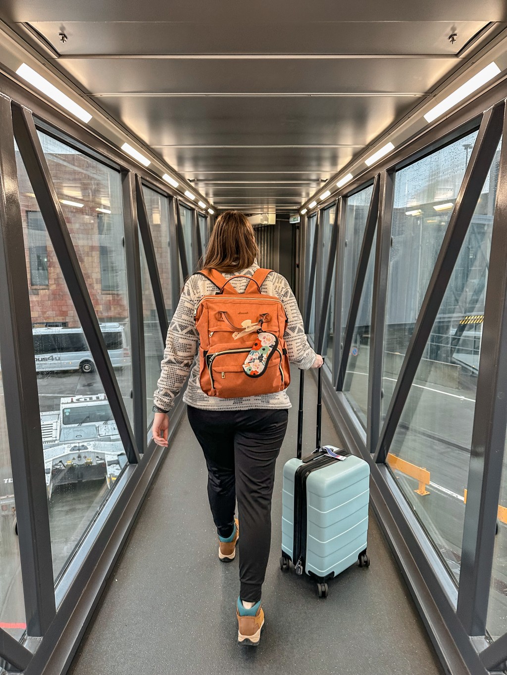 We were glad we got there early because there were a few extra steps needed to be taken when boarding for an international flight, or at least for this one. First, they checked our passports, which we weren’t surprised by as we figured they would. Next, they checked the size of our bags and carry on suitcases by having us put them in the baggage sizer. This step we were a little less prepared for but still not super surprised since we knew there were listed measurements for carry-ons when we purchased the plane tickets and had seen baggage sizers around. Thankfully they passed the test! Last, however, they checked the weight of our luggage. This was something we had not prepared for or checked in any way as we had put all our attention on squeezing 10 days worth of clothes for cold and warm weather alike into a carry on suitcase. We were completely taken by surprise. My luggage just barely came in under the weight limit. Luke’s, unfortunately, was just over and had to be checked. We had never checked luggage before. Luckily, they checked it for free, but we knew that could be something that we might have to come to terms with forking over fees for on other flights. Fortunately we were able to come to terms with this fairly quickly, as it meant we were going and were willing to splurge a little if it meant having a worry-free and enjoyable honeymoon.
