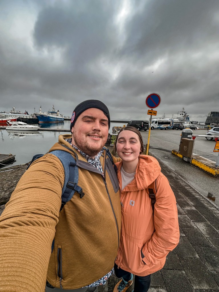 After shopping for about 45 minutes to an hour, we made our way back to our Airbnb to drop off our bags and memorabilia before heading back out. Then we walked to the harbor where we would meet our tour boat for departure to the Akurey Island, where the Puffins nest. On the way to the harbor, we passed right by the famous Rainbow Street and had enough time to make a quick pit stop to get some pictures. We passed an extremely local kiosk called Vitinn to grab a cup of hot coffee for the walk. They greeted us in Icelandic until we ordered in English. Everyone inside the small shop was communicating in Icelandic, so it had the vibe that everyone knew each other and were close-knit and friendly, which was fun to step inside and immerse ourselves in!