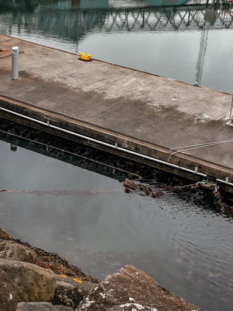The walk to the harbor was an absolute treat. We got to see more of the city that we might have otherwise missed. One thing we passed was a mural that included vents in the sidewalk that released steam in front of the mural to represent fog rolling across the harbor! We also passed a very famous hot dog stand, and even though there wasn’t anyone in line yet, which was unusual for this place, it was too early in the day for us to eat a hot dog. We also didn’t want to have full bellies right before getting on to a rocking boat, so we made a mental note to stop by on our way back.