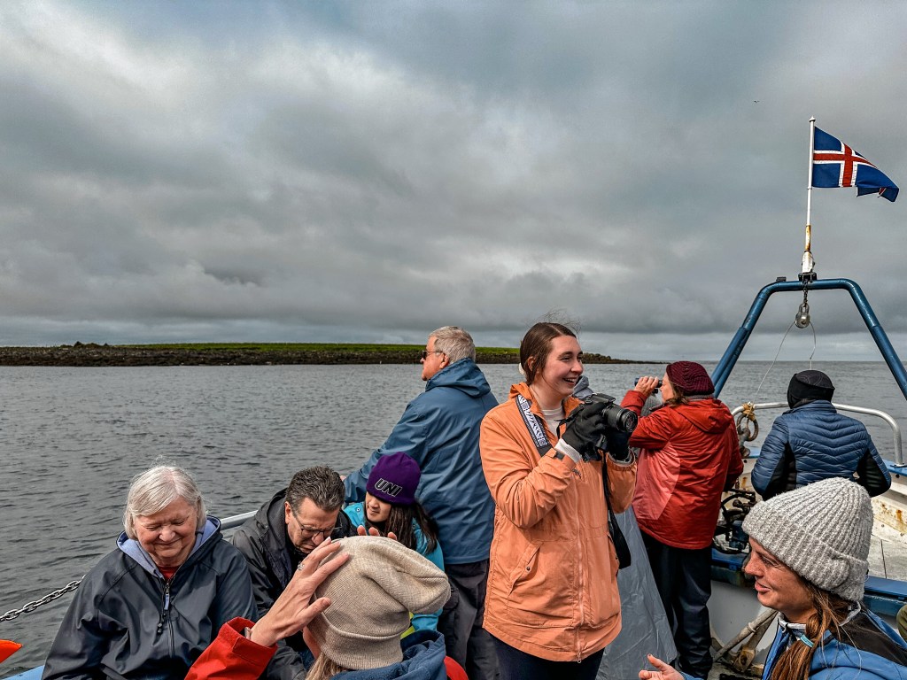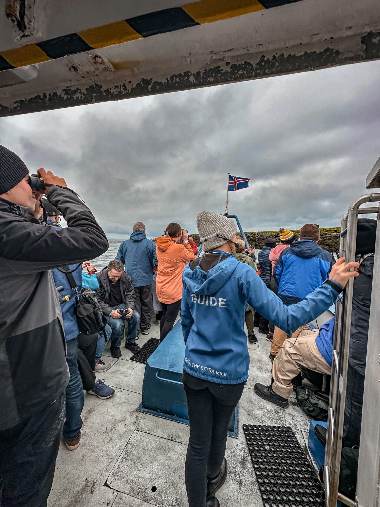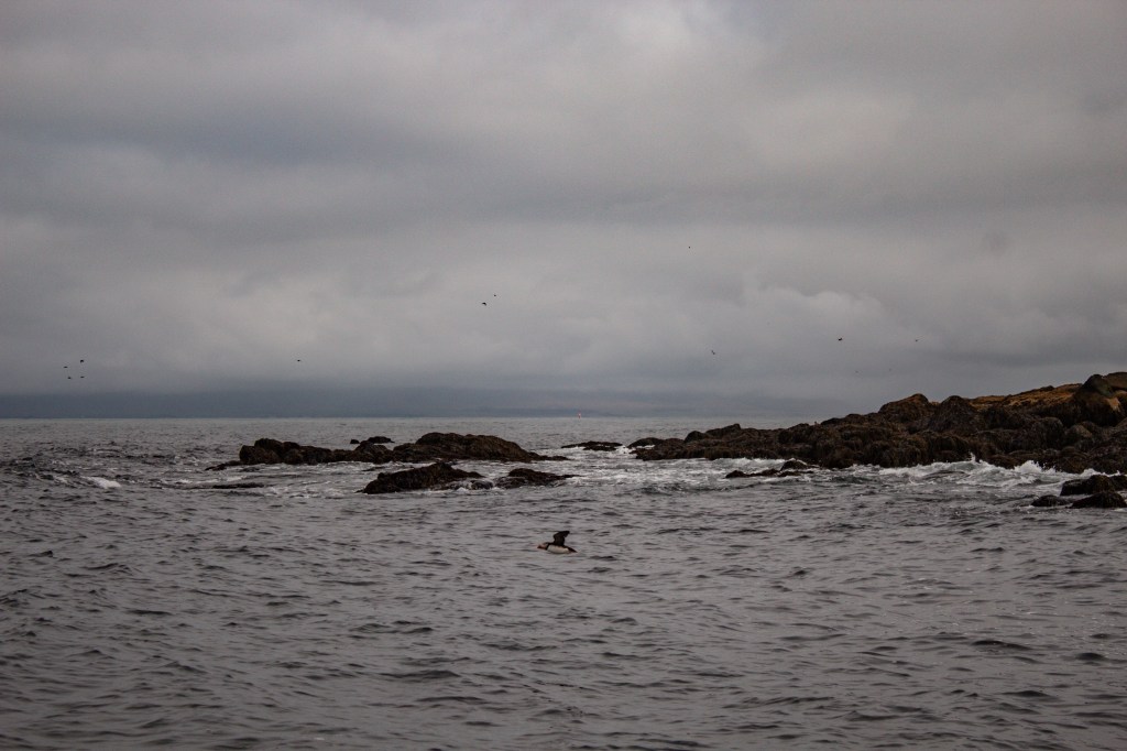 We still managed to arrive at the harbor about half an hour early, so we got checked in at the Specialty Tours ticket office and then walked around the harbor while we waited. There were a couple of adorable little families of ducks swimming around in the shallow waters. The ducklings were so painfully precious that I think I would’ve been content to just watch them paddle around for hours. However, 11:00 snuck up on us real b quick and our tour guide, Iris, arrived prepped and ready to take us to see some Puffins. My attention swiftly shifted and there was a hop in my step as I gleefully followed Iris down the dock ramp to the tour boat that would be taking us to see these perfect little seabirds!