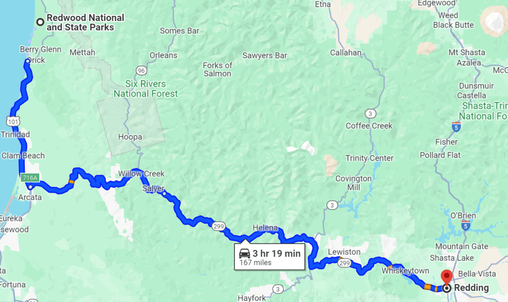 Leaving Redwood National Park included large elevation changes. This meant a lot of winding roads. There was a two hour stretch we had nothing but turns back and forth down the mountains. We had to pull off to the side of the road and sit still to reset ourselves.