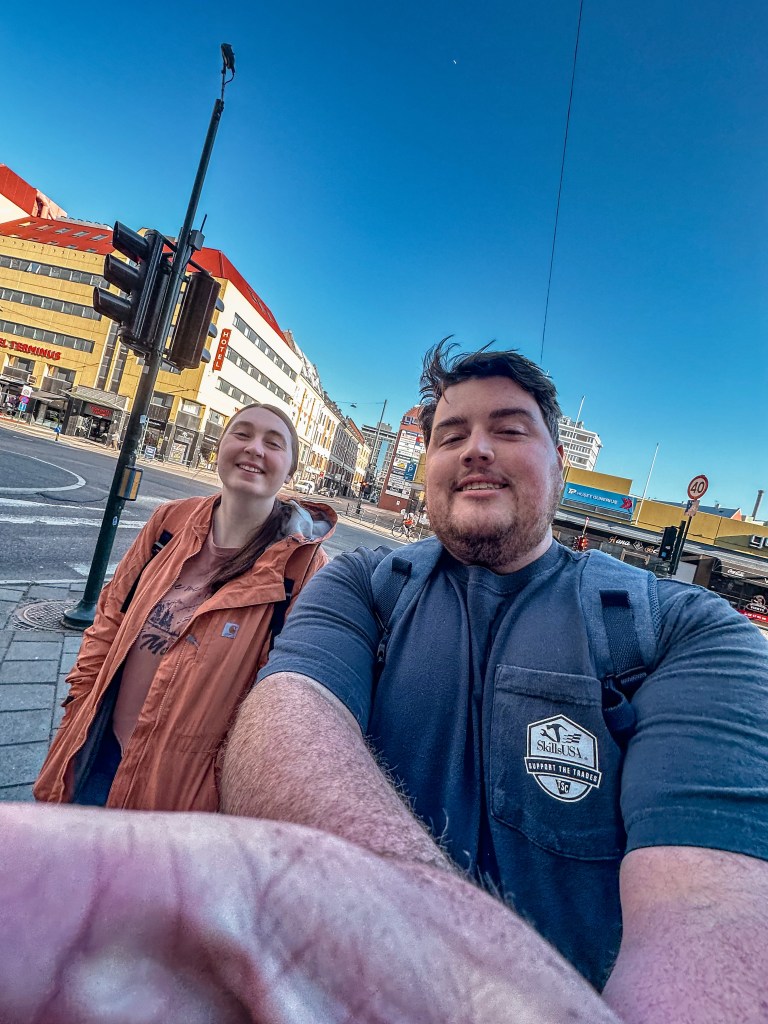 It was a very calm and beautiful morning for a walk back toward the train station we had very stressfully arrived through just 15 hours before. The streets were surprisingly quiet and empty for what we would have expected for a Friday morning. We were able to leisurely make our way to Oslo Central Station. With the sun shining on our faces, we snagged a couple of obligatory selfies to capture our morning excitement and city landscape. Little did we know how different our environment would be within the same country just a few short hours later.