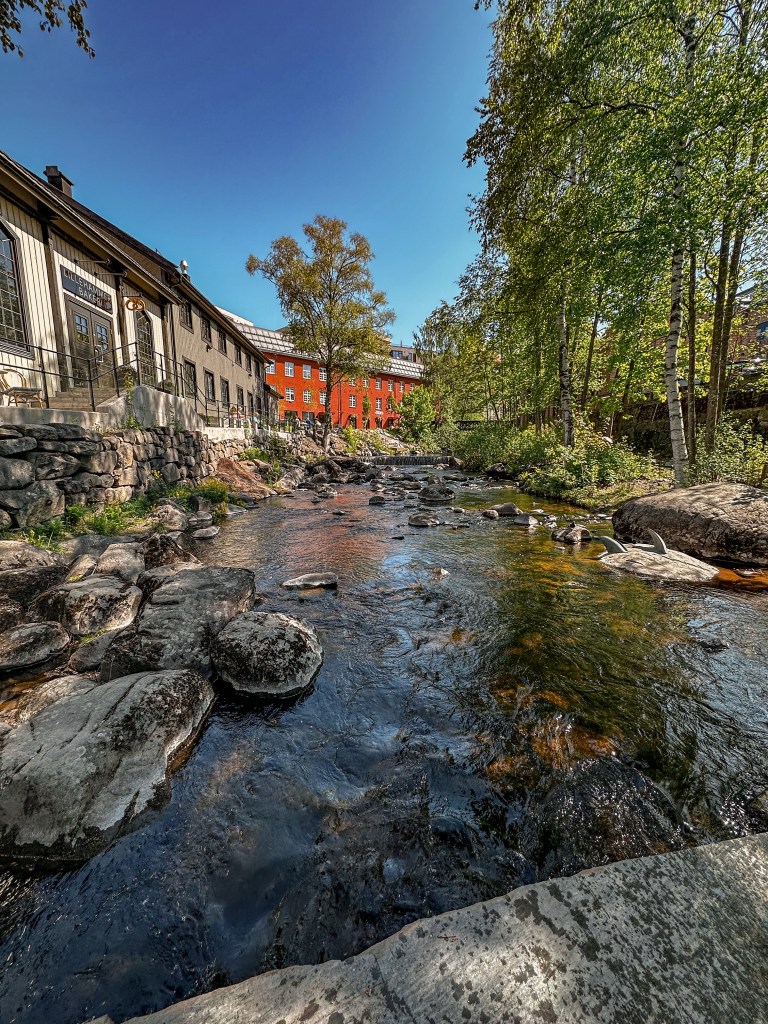A quick walk brought us to the town centre where the streets quickly went from being quiet and empty to bustling and busy. Shops lined the main street through town with many stunning buildings, eateries, and establishments settled quaintly in this mountain-surrounded area with the Lågen river running through it.