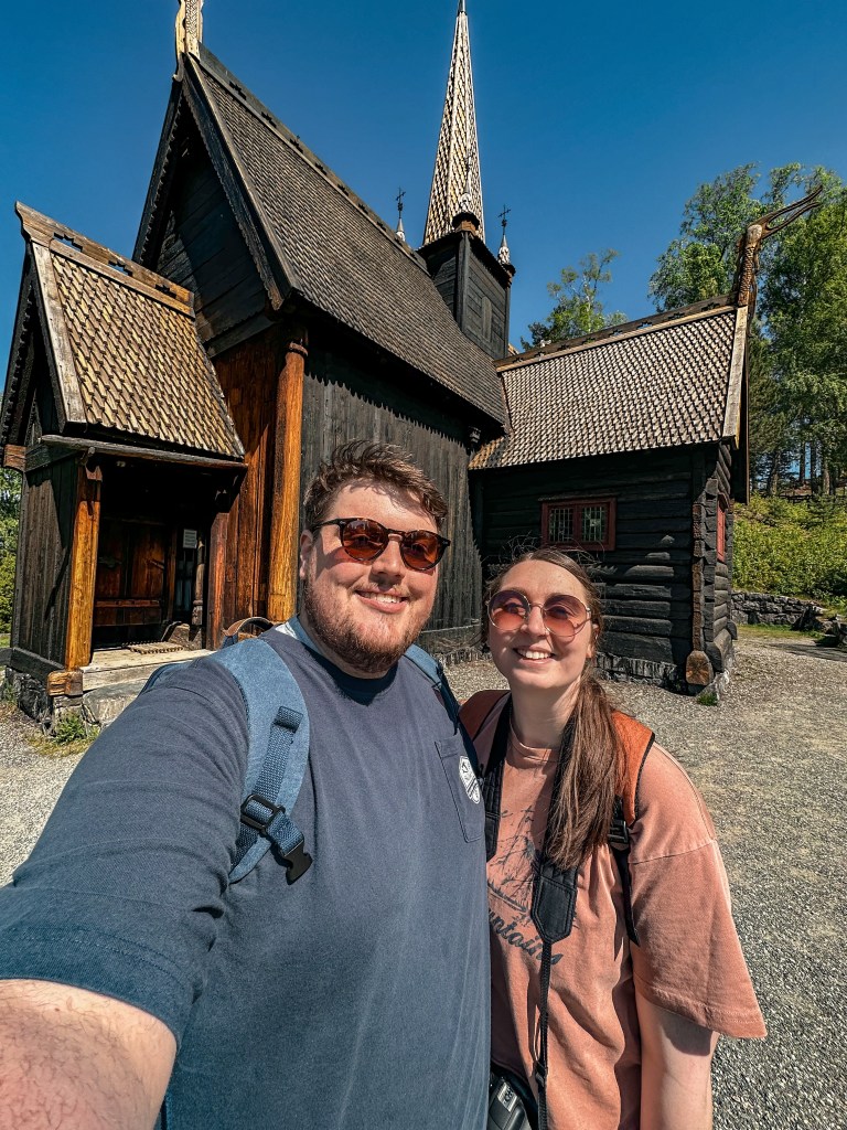 As we made our way higher up the mountain and into the older section of the open-air museum, we were even more astounded by the traditional Norwegian architecture. One of the most stunning and recognizable structures is the Garmo Stave Church. It is located right at the top of the hill near the entrance to the Open Air Museum. It was built in the 1200’s in Garmo in Lom but was dismounted in 1880 and reconstructed with the same materials at Maihaugen in 1921. The church is even still used for services during the summer months and the occasional wedding ceremony! Something especially cool for us being from South Dakota, there is a stave church in Rapid City, South Dakota built to resemble the stave churches of Norway!