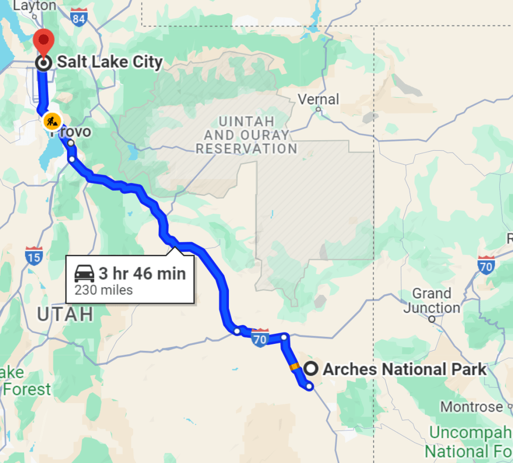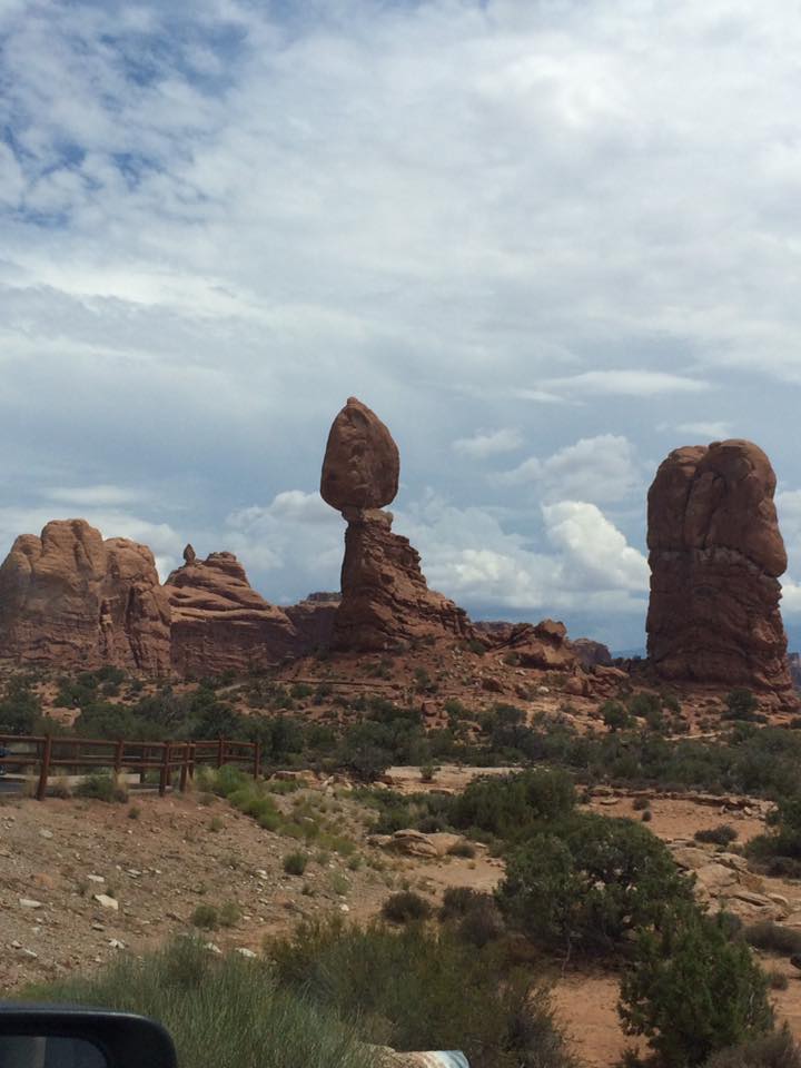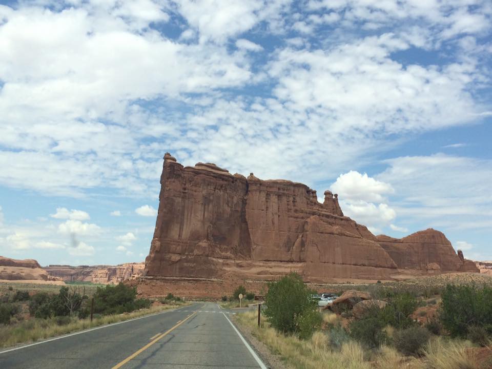 We have a shorter drive to Arches National Park. The landscape changes drastically halfway through the trip. We leave the mountains and enter the old west. These red rock monoliths start appearing on the horizon and it feels like you’re travelling back in time. You start feeling the need for a horse and a sunset to ride off into.