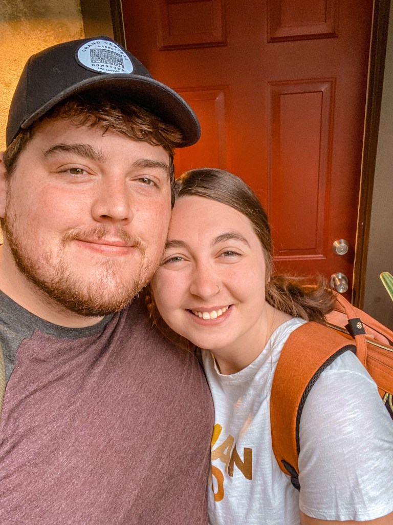 The one time we would’ve wanted a longer drive was the one time it wasn’t granted. It only took about 15 minutes before we were in line for the airport drop off. Because it was just a drop off since parking would be too much of a pain, we knew it would have to be a brief farewell. I’m not sure if this made things easier because we didn’t have time for the emotions to fully sink in or harder because we couldn’t do a proper goodbye to people we love so much that live 1,600 miles away, but we didn’t really have a choice either way. One tearful goodbye later, we were once again masked up and being shuttled to our terminal.