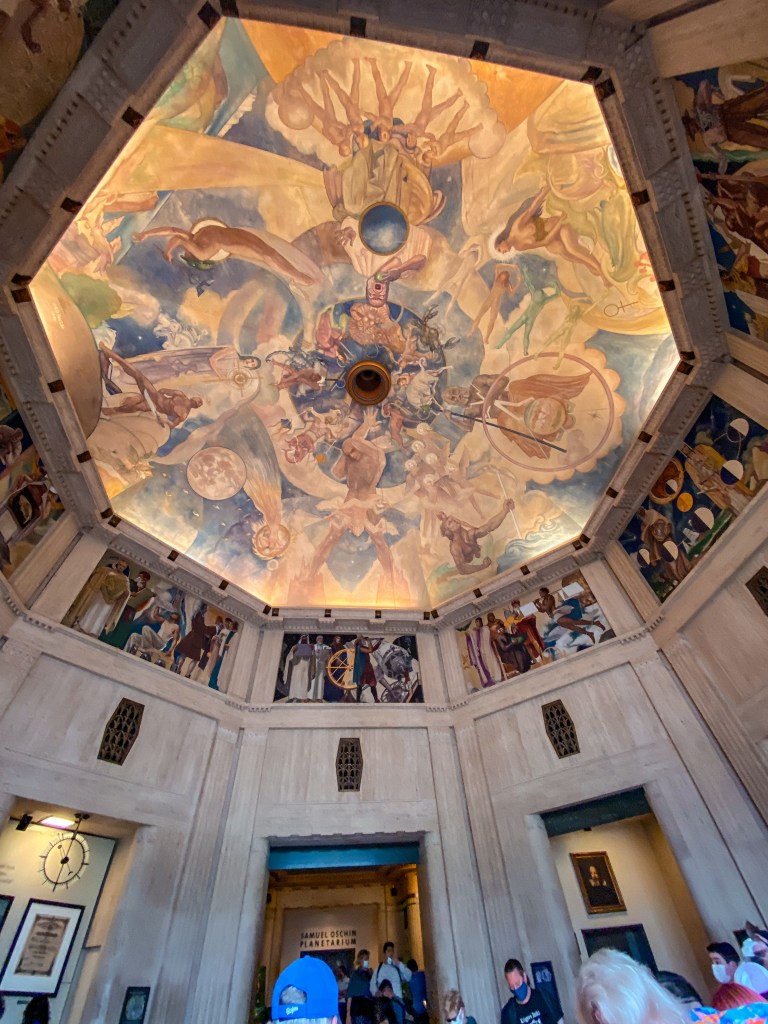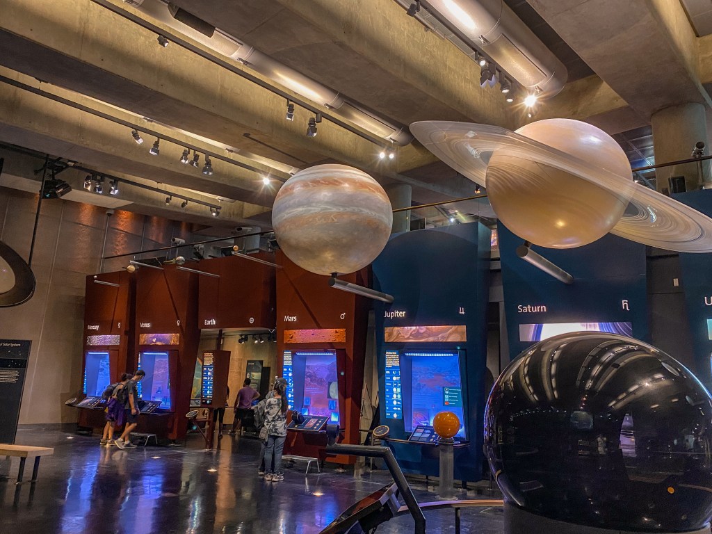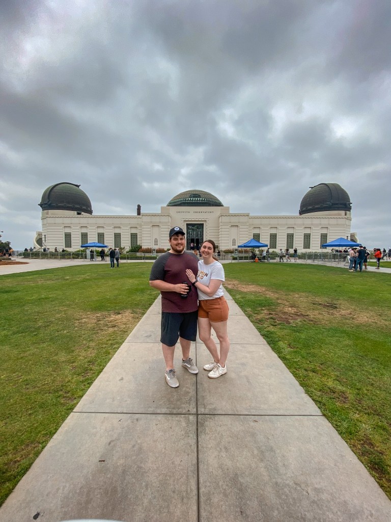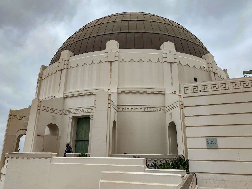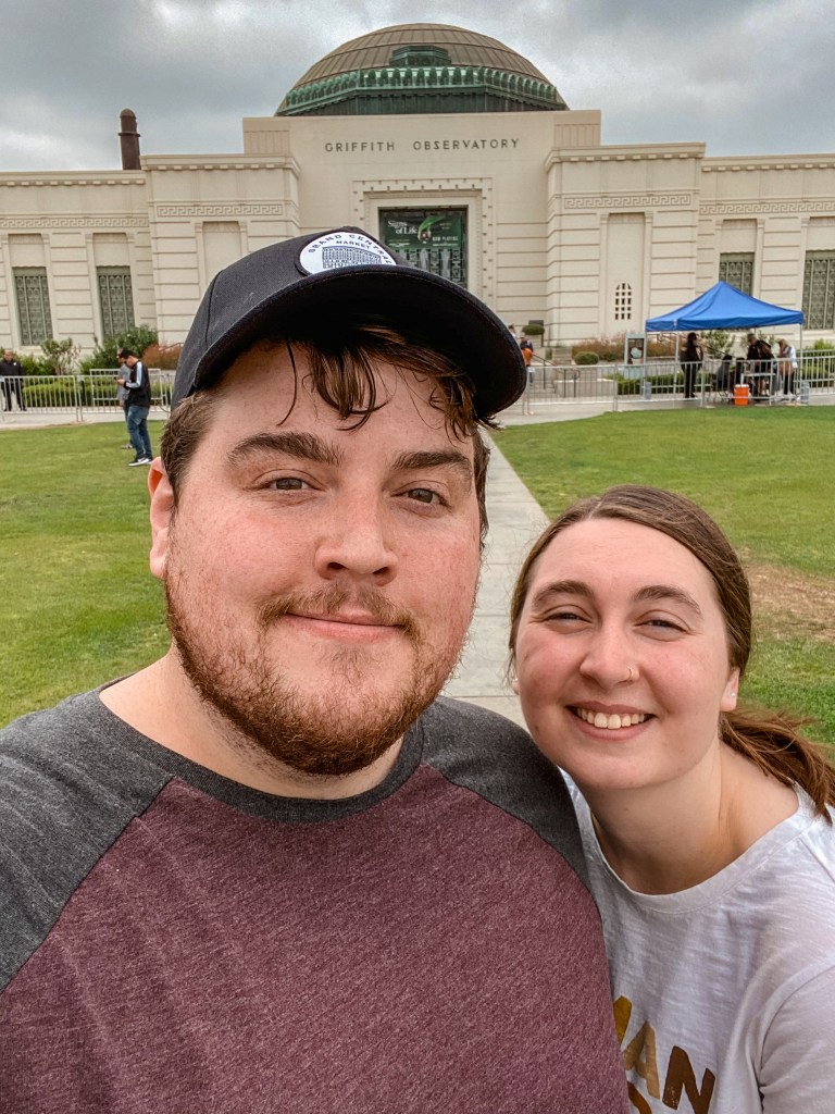 Then, Alyssa and Evan encouraged us to check out inside, even if only for a little bit. Luke and I masked up and made our way into the beautiful Griffith Observatory building. Neither of us are necessarily big into space, but we still enjoyed taking a quick peruse around and seeing a lot of the history mentioned and preserved inside. We spent about 20 minutes exploring and meandering around, during which time a helicopter flew close by overhead while we were out on an observation deck, before making our way back out to Evan and Alyssa.