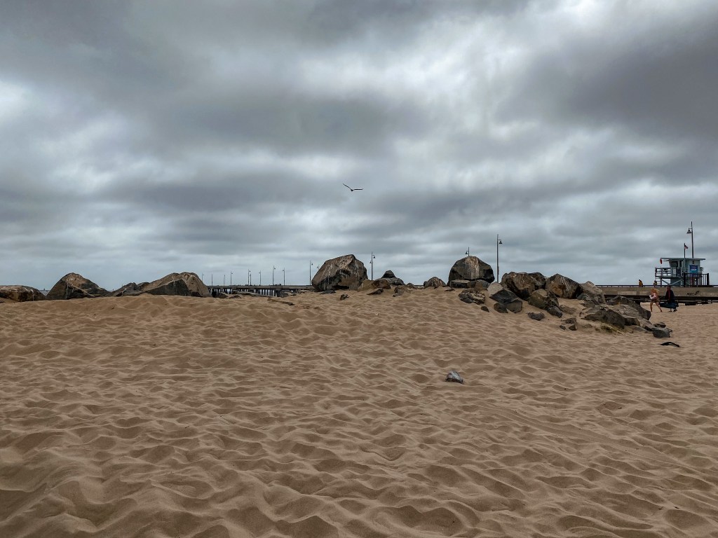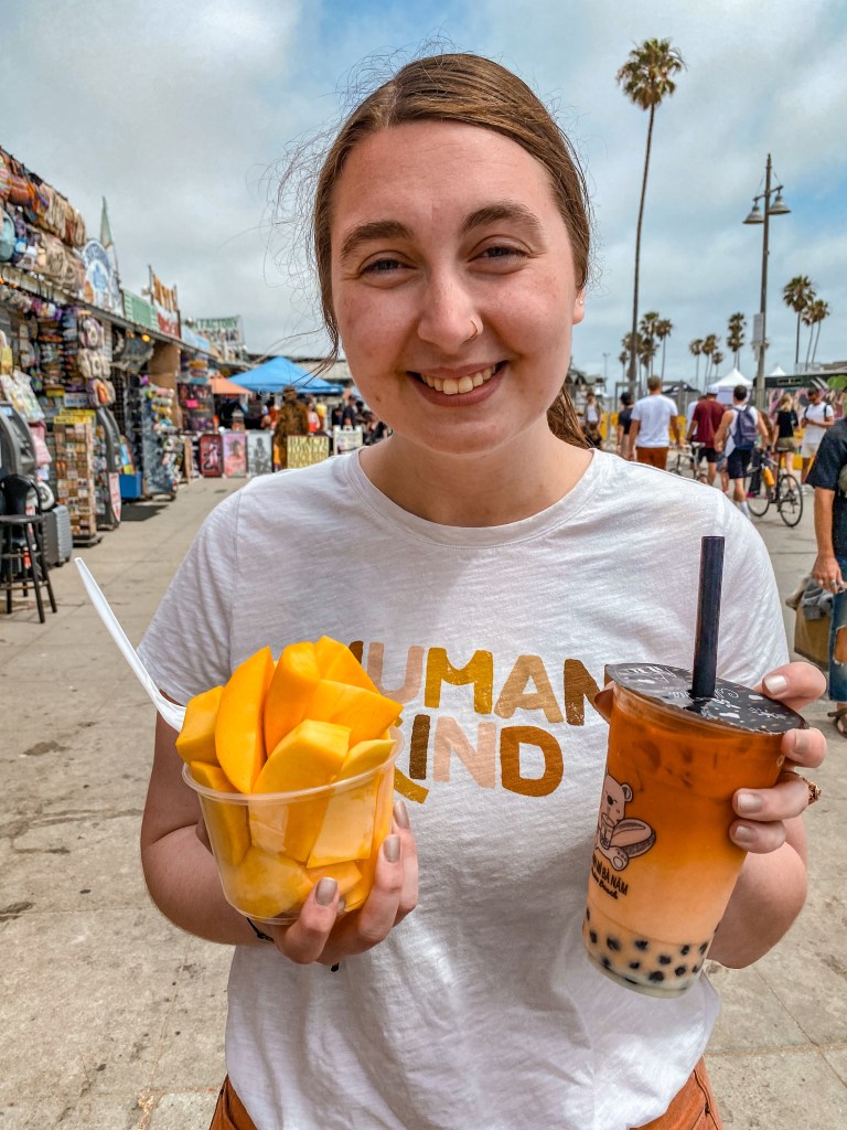 After a while, we moved on and found some delectable items we desired. I got a Thai milk tea and a cup of fresh mangoes. Both were absolutely amazing, and the mangoes filled me up a surprising amount. Before too long, it was time to make our way back to calmer area of the beach and back toward the vehicle. The clouds started to cover the sun again, almost like they were trying to make leaving a little easier for us. We used the public bathrooms at the beach before starting to make our way to LAX.