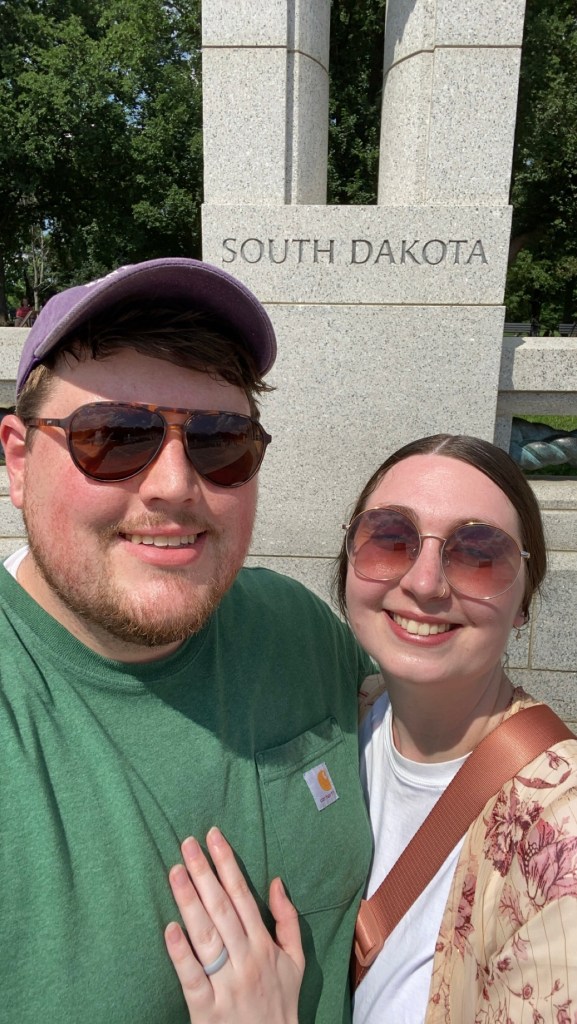 We then bussed back to the area that had The Korean and Vietnam war memorial. We were a little rushed last night and a number of students were disappointed they didn’t get enough time to take those in. A short walk from there is the World War 2 memorial. We all had a turn taking pictures in front of the South Dakota pillar.