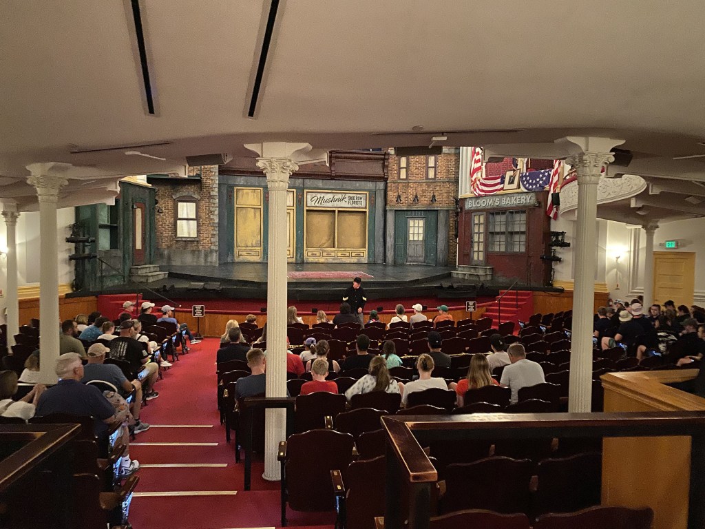 We dropped our purchases off a the busses and got in line to wait for the first dramatic telling of the day. This theatre is beautifully preserved and subtly updated so you can imagine it in its era. We filled in to watch a national parks worker perform a reenactment of sorts. He told a story from the perspective of a soldier meant to guard Lincoln that night. He went over the assassination and also hunting down John Wilkes Booth, the assassin.