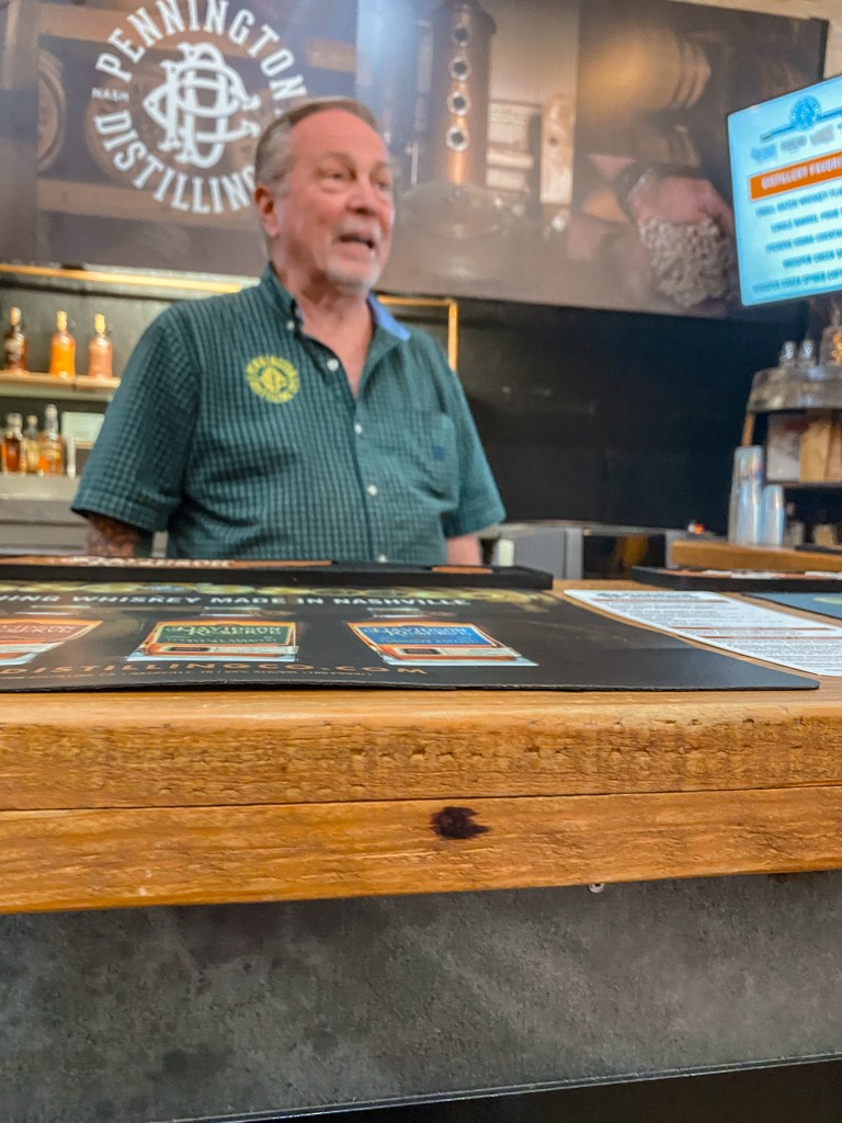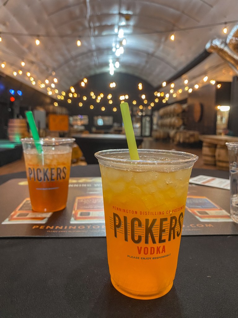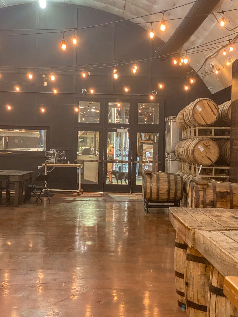 We hadn’t quite decided what our next stopover would be. We had tentatively added visiting a distillery or two to our plans for the day, but we had no idea where to even start with choosing or finding one. Serendipitously, on our coasters at Party Fowl, was the name of a local distillery and a QR code you could scan to schedule a tour. It was settled then! We checked to make sure they had some openings for the day, and seemingly, all the times were available, so we booked a tour at Pennington Distilling Co.