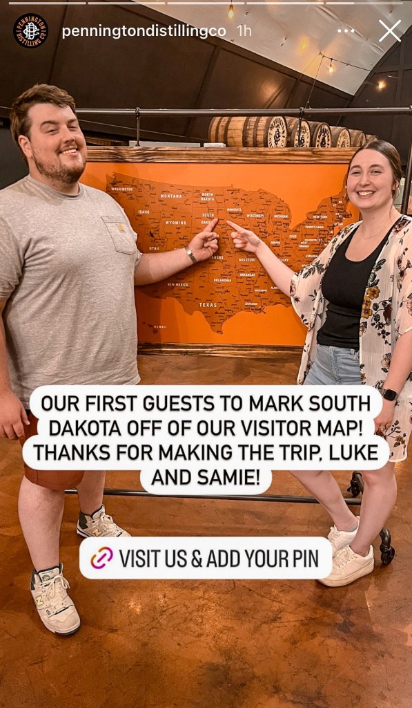 Then it was time to say goodbye to our wonderful new friend Jim and call an Uber to take our very drunk selves to our Airbnb. While we waited for our ride, we put a location pin into their visitor map, and we discovered we were their first guests from South Dakota! All of us were excited, and they even took our picture and posted it to their instagram story to share they had received their first South Dakota visitors, which is pretty cool!