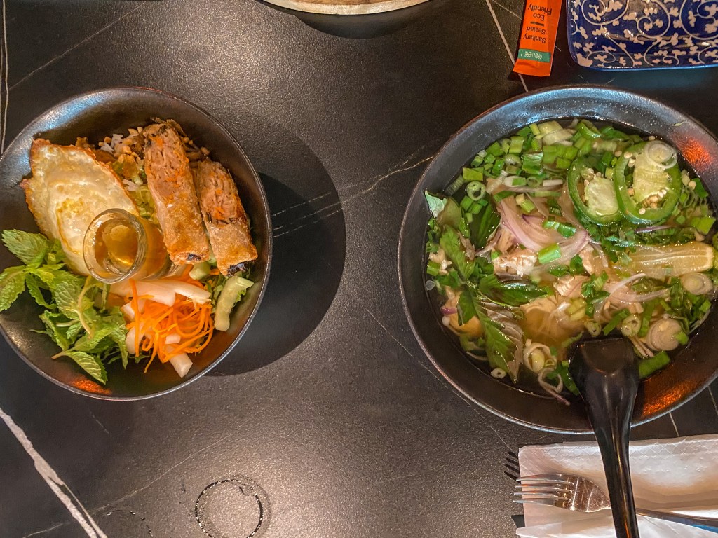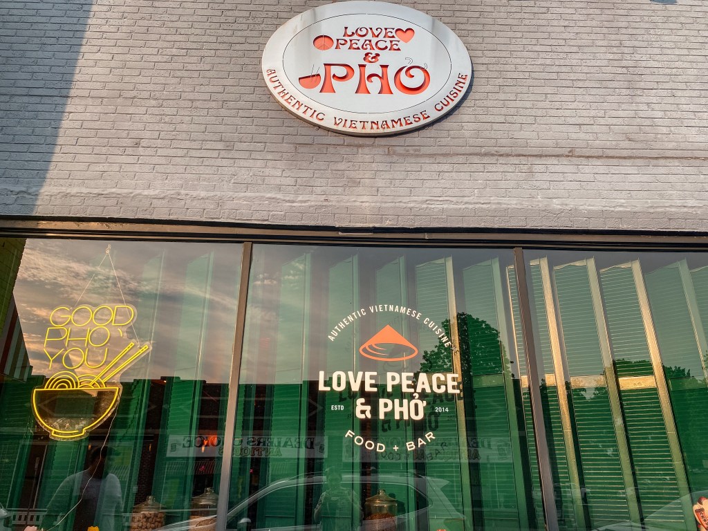 We also didn’t feel like going far for food that night, so after coffee, we just walked a few doors down to a Vietnamese restaurant called Love, Peace, and Pho that we had seen in our Airbnb welcome packet as a nearby food spot. As soon as you walked in, it was obvious they served very authentic Vietnamese cuisine, and we were extremely excited to try it!