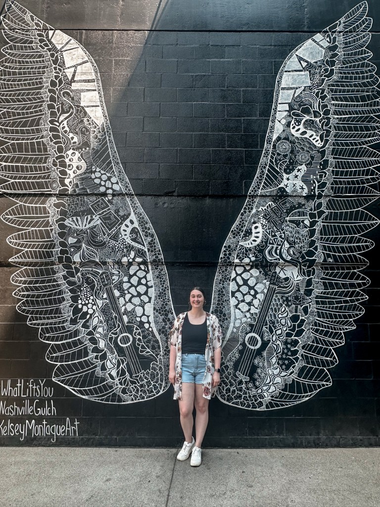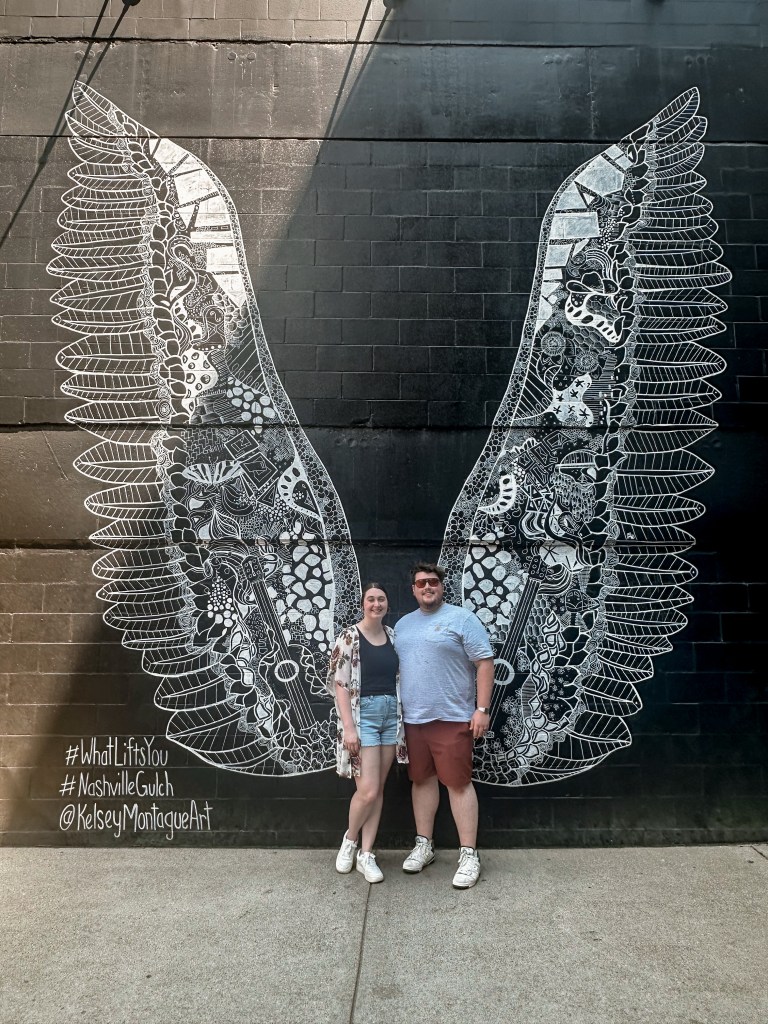 While walking from Biscuit Love to Milk & Honey, we passed on Nashville’s most iconic photo destinations, the WhatLifts You Wings Mural. We knew we wanted to get our coffee first, but we also knew we had to come back to get the quintessential winged photo.