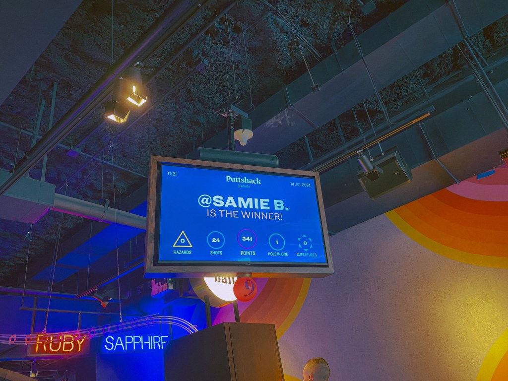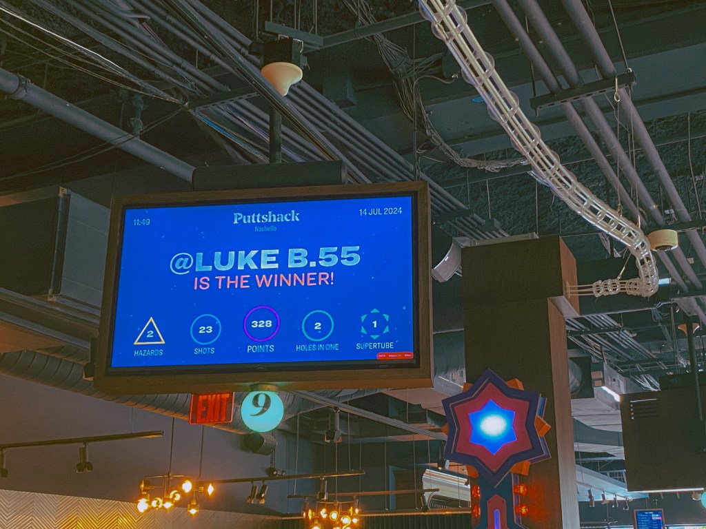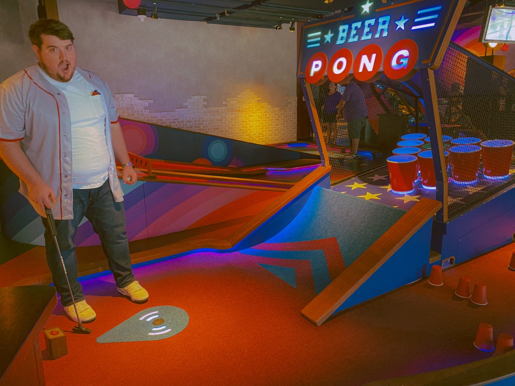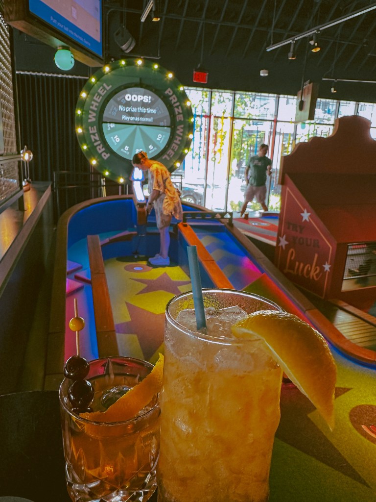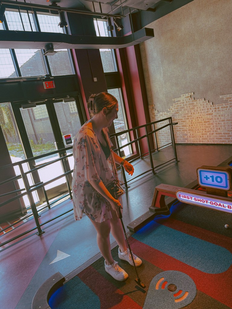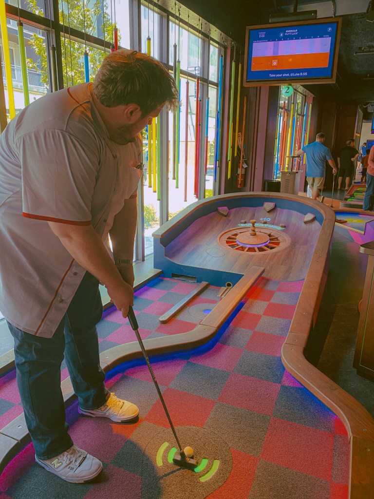 However, we of course weren’t about to waste an entire day when traveling! When researching for what we might possibly do for our final day, one of the things we came across was an indoor mini-golf course called Puttshack, located in downtown Nashville. In the early days of our relationship that started back in 2015, mini golf was one of our first big dates. Ever since, it has been almost a yearly activity we have done together. It has especially been a popular activity for us to include to celebrate our yearly wedding anniversary as opposed to our dating anniversary! Since this trip was basically an anniversary celebration since we would be on our way to Winnipeg on our actual anniversary, we figured some mini golf would be a perfect activity for the conclusion day of our trip!