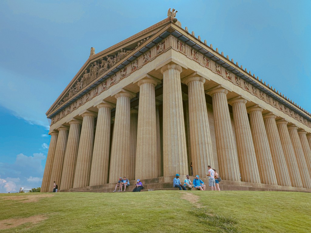 Finally, we made our way over to the Nashville Parthenon. It is an art museum that, as the name suggests, resembles The Parthenon in Athens, Greece. Just like the original, the inside also features a 42-foot statue of the Greek goddess, Athena. The museum had closed by the time we had gotten there, but again, this wasn’t at the top of our list, and we don’t know if we would have wanted to go inside anyway, so we were fine. There is an admission fee if you are interested in entering The Parthenon, $10 for adults. We were content just to walk around the outside and take in the huge full-scale model of the form Grecian temple, whose remains we hope to one day actually see in person!