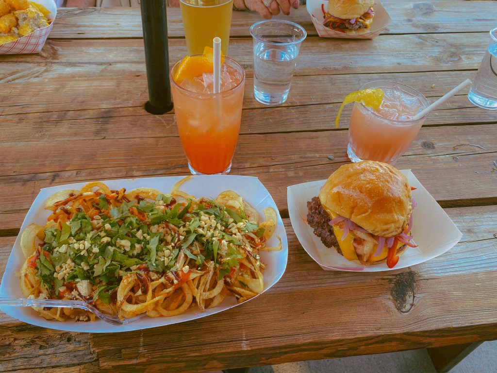 For drinks, we stopped into Harold’s. Beers were the popular beverage of choice, but Luke and I also wanted to try a couple of their cocktails. Luke got a Whiskey Fairway Smash which is rye, rosemary simple, lemon juice, and pomegranate shrub. I got a an Aperol Papa Pancho which is aperol, peach liqueur, grapefruit juice, and Prosecco. They were both satisfyingly refreshing and tasty!