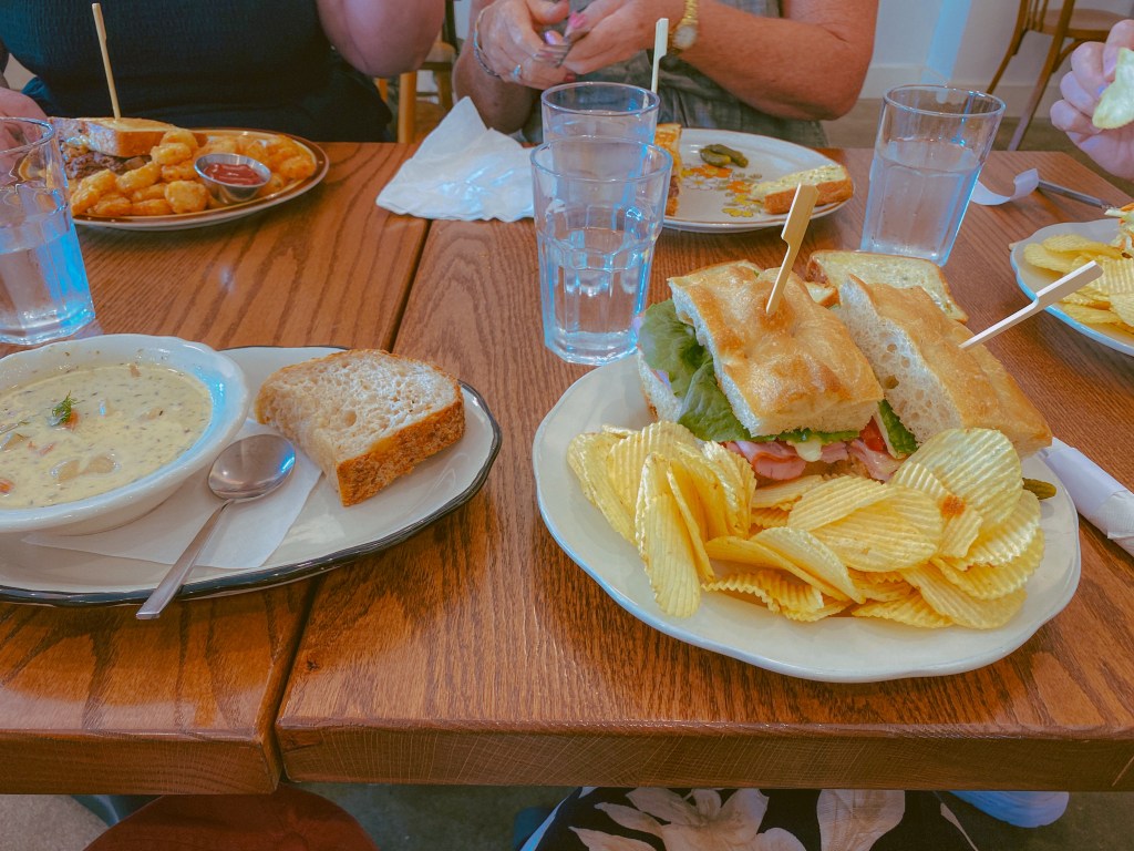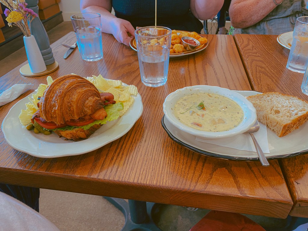 Right away when we walked in, the bakery items on display looked far too tempting, and we knew we would be leaving with a few in hand before we departed. First, however, we sat down to order a meal of more sustenance. Much of the menu was eye-catching and made choosing what to order quite the quandary. Luckily, we were all able to pick out something that we fancied. I must admit that I can’t recall everyone’s order, but I do know that it all looked wonderfully appetizing! I remember that I ordered The Bernie, a sandwich with ham (or turkey), brie, lettuce, giardiniera and vinaigrette on focaccia. I also am certain that Luke ordered a bowl of their knoephla soup, as it is one of his favorites. For a sandwich, I believe he ordered The Piglet, which is ham and mayo on a croissant. Wracking my memory, I think there were a couple of patty melts on the table as well. However, it’s worth checking out the menu yourself because there were no wrong answers!