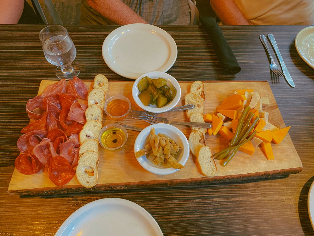 We made our way to an eatery across the street called Saddlery. We were all feeling something a little more light, so we decided to order a charcuterie board to share. The board came filled with cured meats, cheeses, house pickles, local honey, and grilled baguettes. Luke and I are already pretty big fans of charcuterie boards, and this one was especially delightful. I, in particular, enjoyed the local honey!