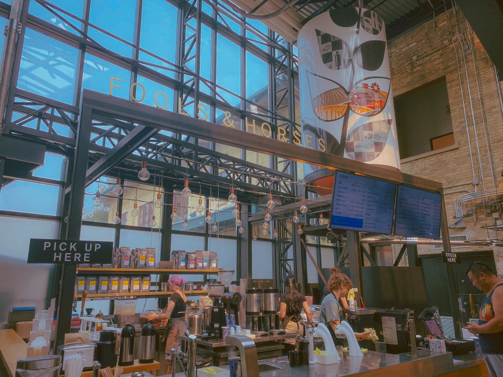 We continued on our way and came across a coffee shop, and it was well-past time for a caffeine boost, so we hopped in line to sample some local coffee at Fools and Horses Coffee Company! We kept it simple but classic with some iced lattes to sip on while we continued our way around the market. We came across some very cool stops such as a shop filled with colorful and eccentric items, a crystal shop, a candy store where we purchased some iconic maple candies, and a carefully curated shop with prints, paintings, foods, pottery (I was tempted to purchase just about every piece), and hand-made items from local artists.