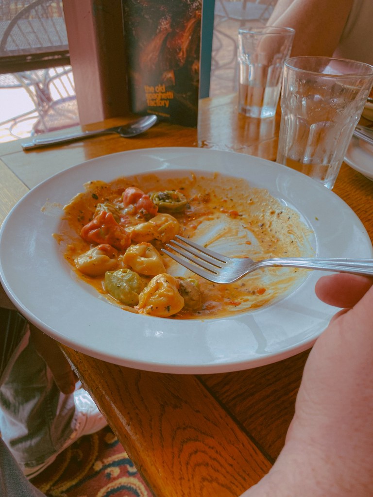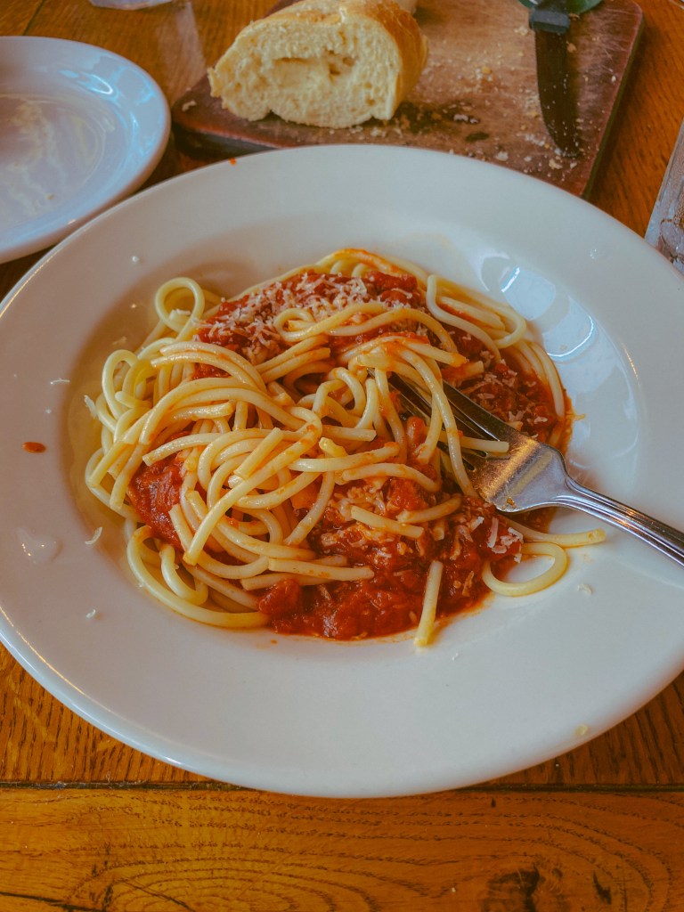 For lunch, they also had lunch specials options to choose from that offered a few different entrees as “lunch size” portions as well, which I appreciated because I’m usually a lighter lunch eater. For our side of the table, Luke ordered the regular sized of the tortellini pomodoro, and I ordered the lunch size spaghetti.