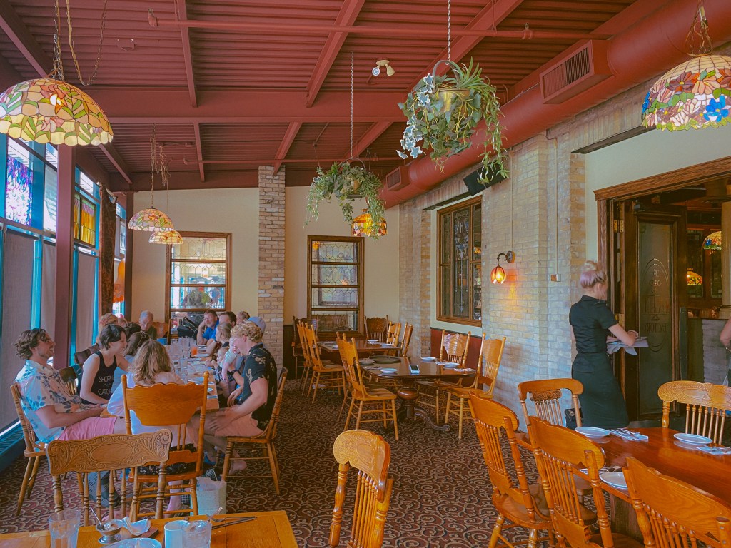 Now jumping back to lunch! Located in the same railway stable as the antique mall was a restaurant called The Old Spaghetti Factory, where we decided to stop in for a nice sit down lunch. The place had a very antique old time restaurant feel, but we were seated out in the sunroom, so it escalated it by also being well-lit on top of the fun vintage decorations and light fixtures!