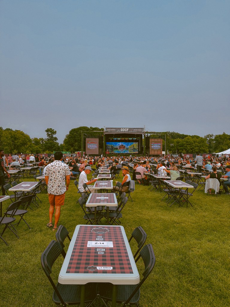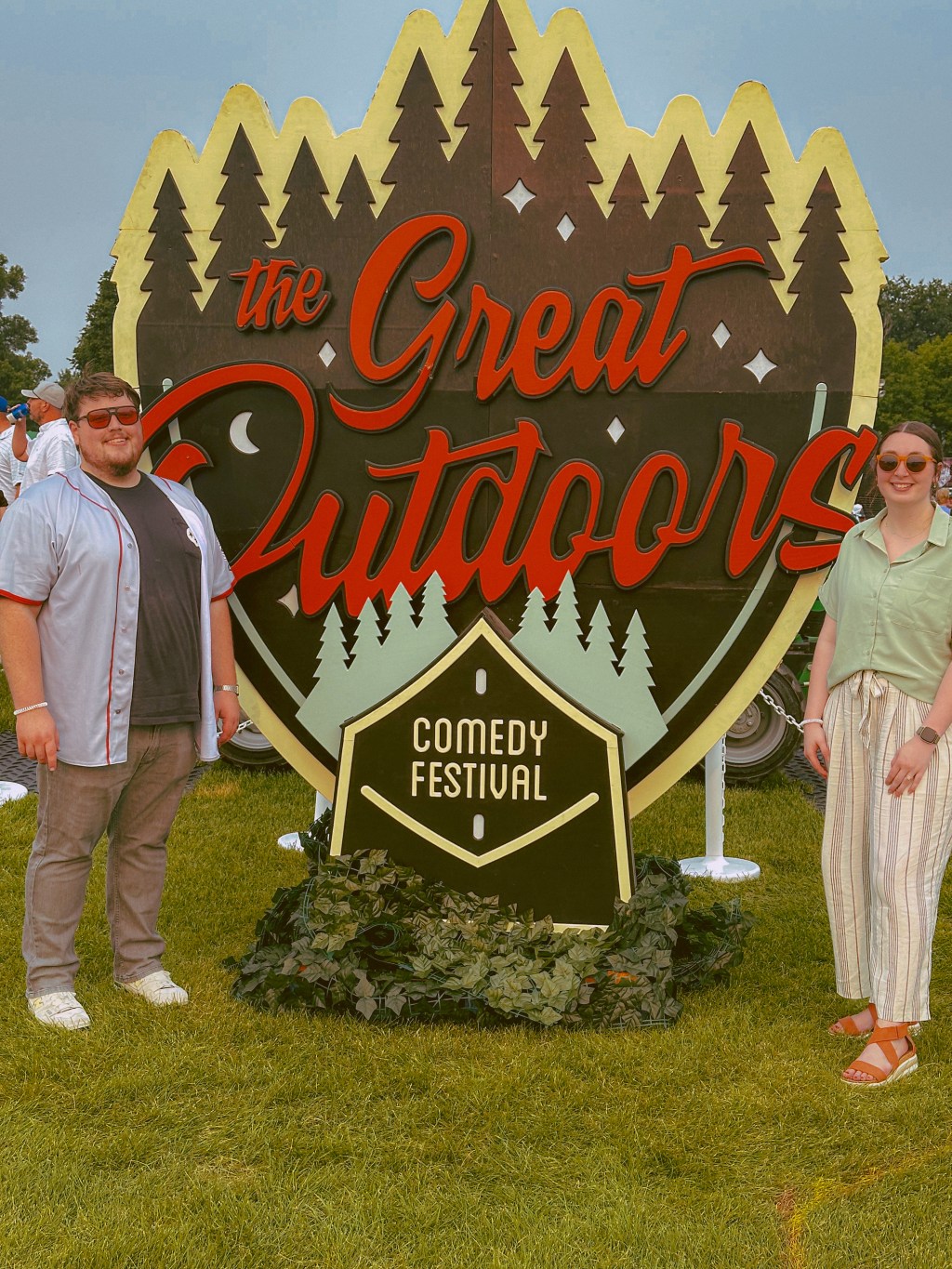 We popped our chairs into the closest spots available and started to sit and recover from the brisk walk over. I, however, was feeling very flustered from the whole ordeal and wanted to release my tension with a walk about and maybe some food or drink since the whole back of the park was lined with food trucks and stands. We also wanted to check out some of the merch to see if we could get some Nate Bargatze stuff, but it was all generic Great Outdoors items and not specific to any one comedian. We did still get a few stickers but not the usual souvenirs we collect at each travel location.