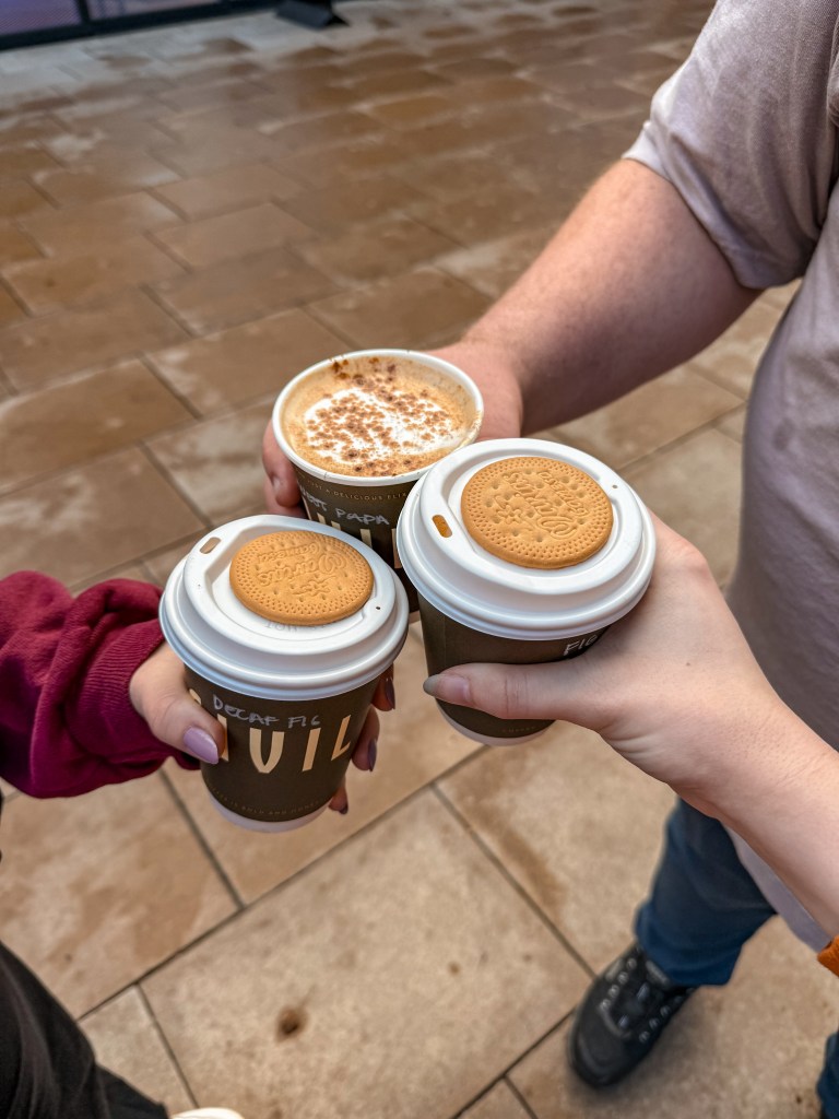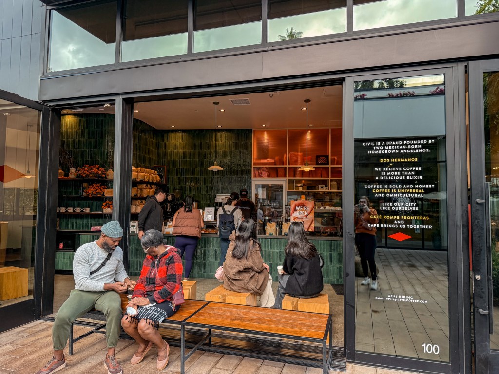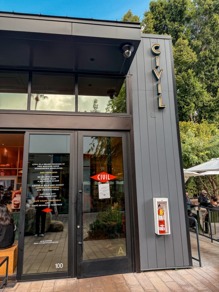 After getting our designated groceries, we made our way back to the apartment to drop them off before heading back out to grab some coffee from a nearby coffee place. Like being only a quick walk away from Ralph’s, Alyssa and Evan are even closer to The Shops at Sportsman’s Lodge, a beautiful and bustling outdoor shopping mall where Evan’s workplace, Erewhon, also happens to be located! We made the lovely walk to Civil Coffee. Alyssa and I both ordered The Figueroa, made with espresso, sweetened condensed milk, cinnamon, and a Maria cookies! Luke decided to try a seasonal drink they had available, a Sweet Potato Pie Latte.