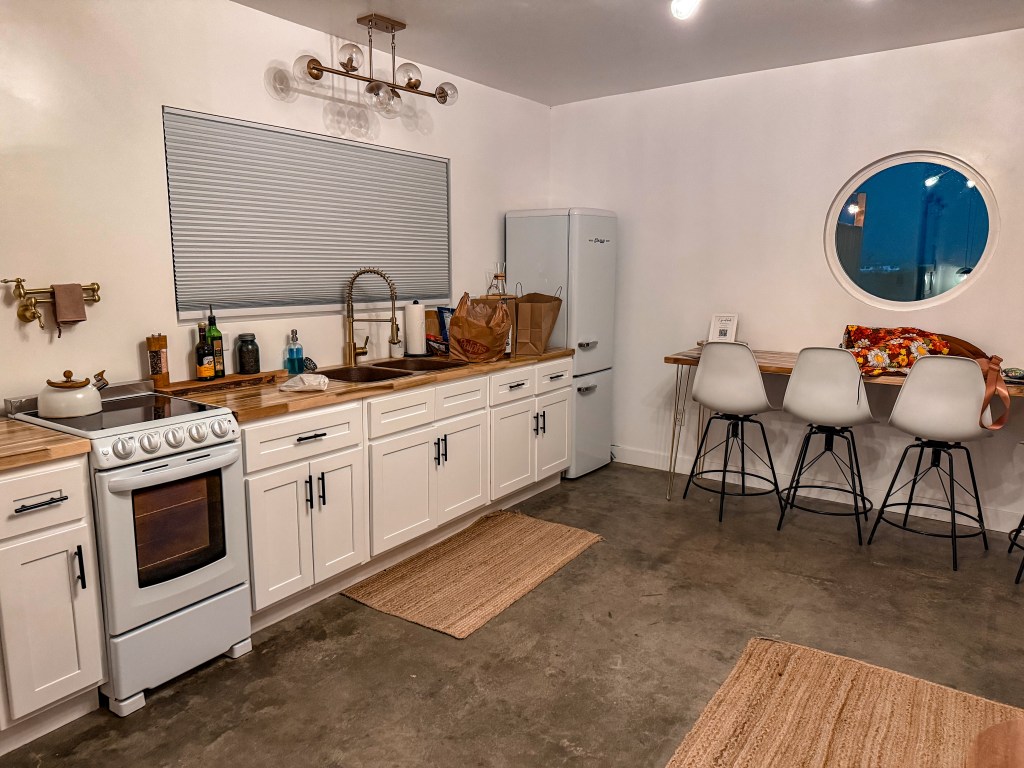 Our Airbnb was called Luna Lookout, which is already the perfect start for us. Our longest-owned pet, our sweet Rat Terrier/Whippet mix is named Luna, so that was already a sign of its own. The amenities our Airbnb provided were also a big draw for us! Starting with the inside, there was no television provided, which was the first time we had booked an Airbnb without one as they are pretty much second nature in most homes at this point in time. However, we liked the idea of having to rely on nature or other resources to fill our time.