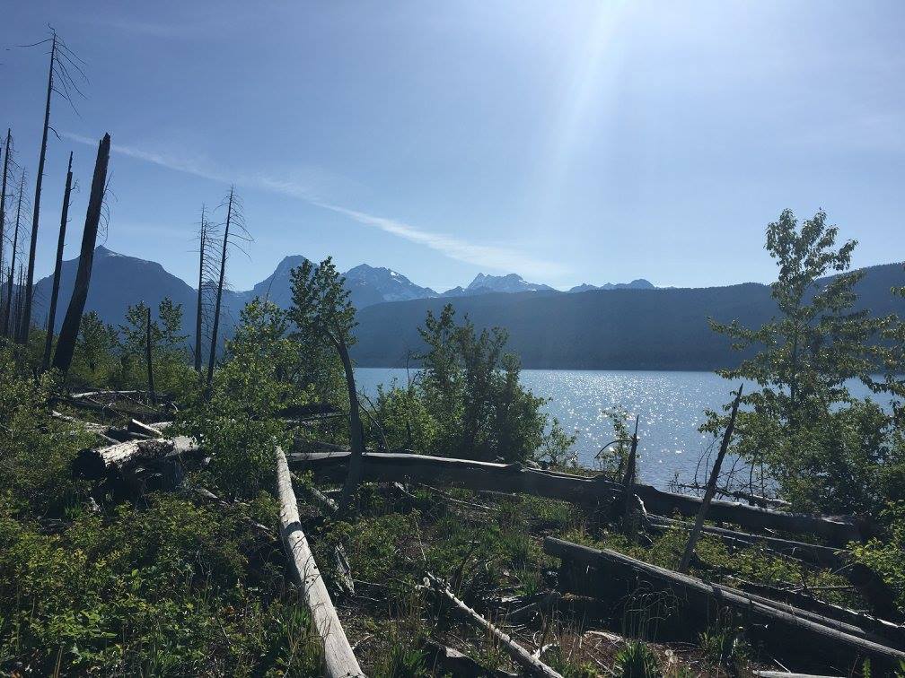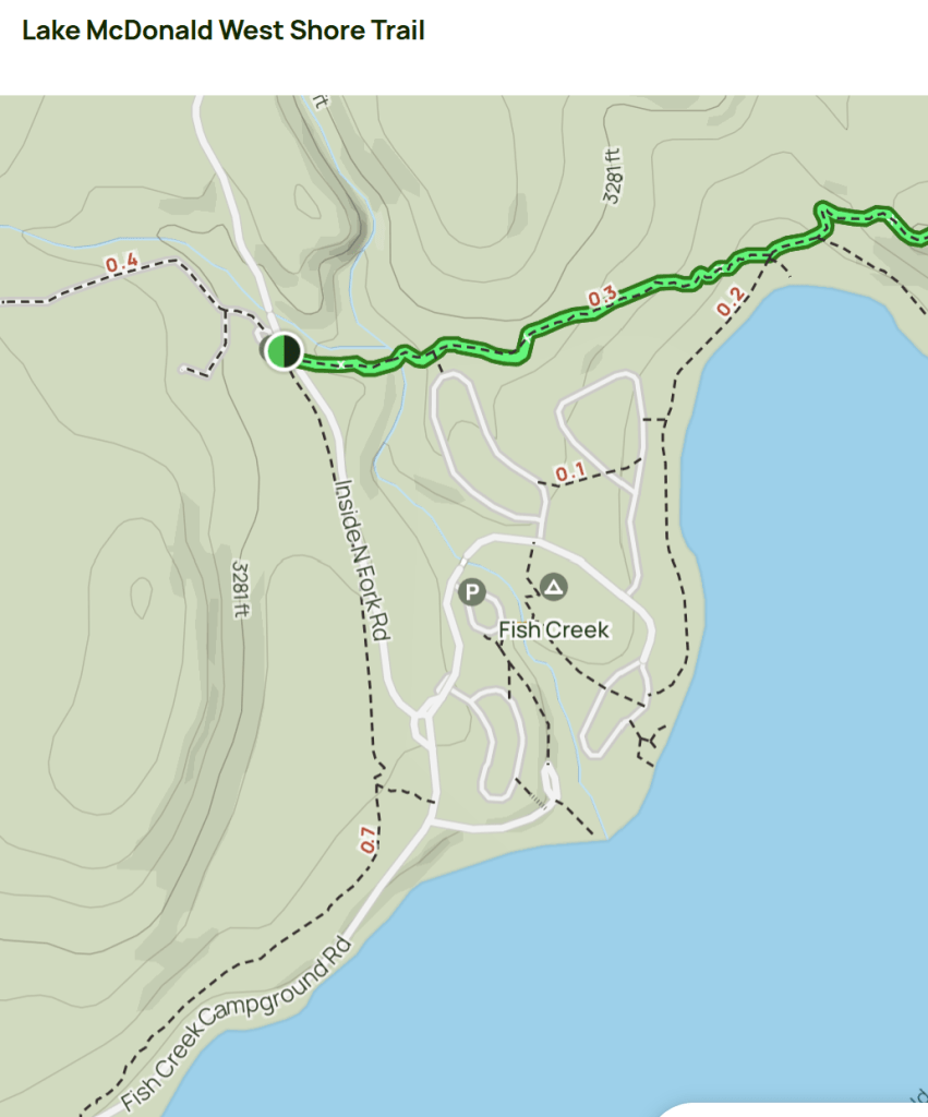 We were camping on the west side of Glacier National Park just north of Apgar in Fish Creek Campgrounds. Our lot was right on Lake Macdonald and a walking path that followed its coast.