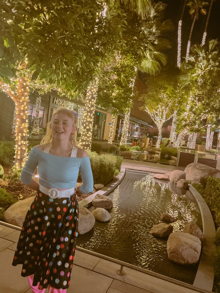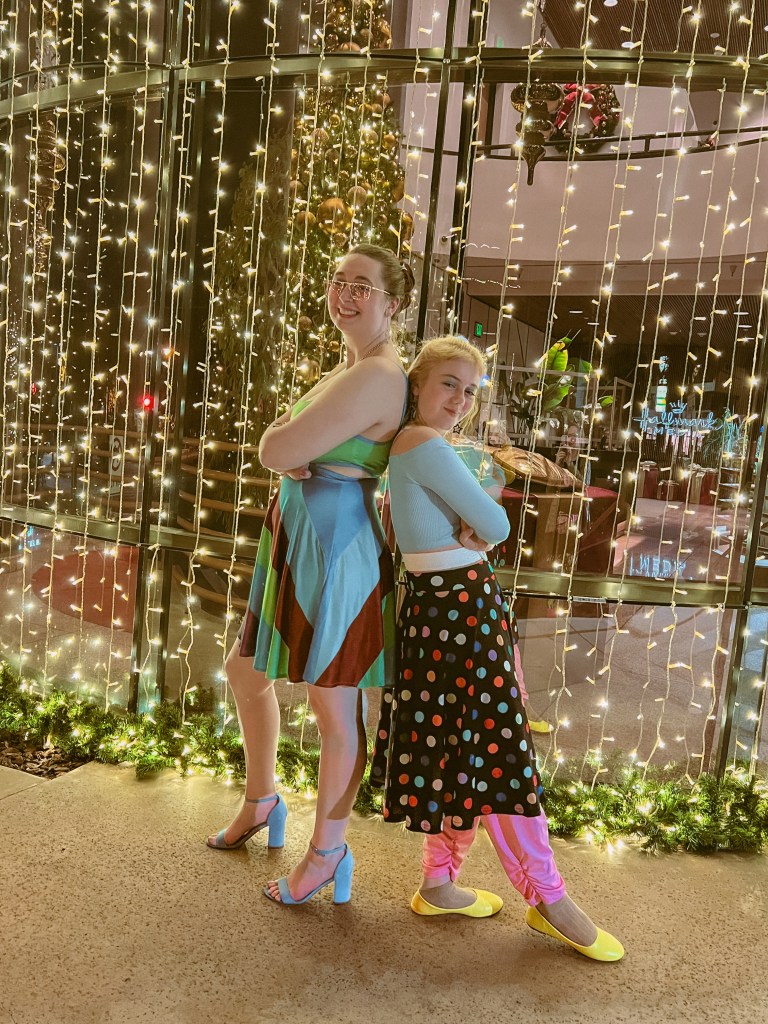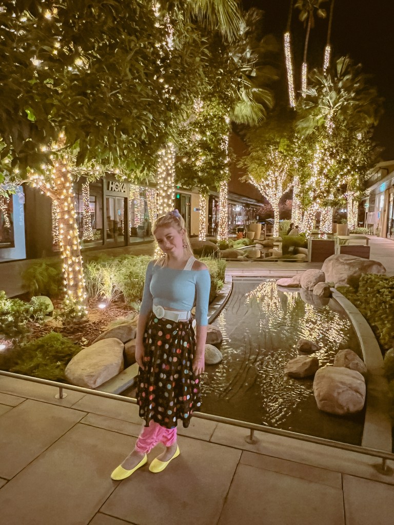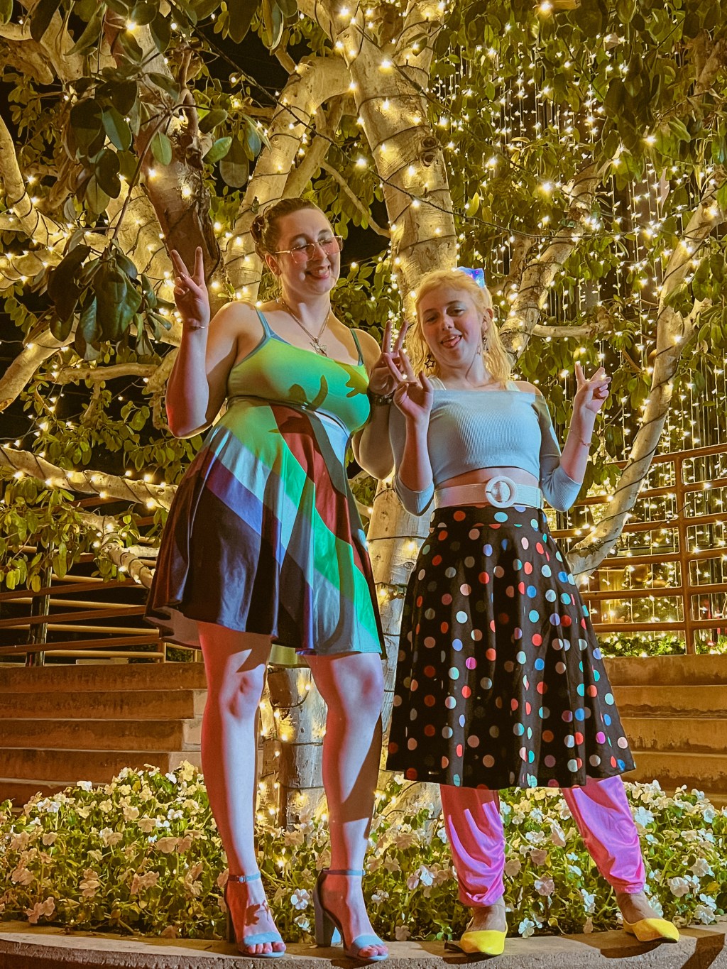 Rebekah and I each took turns getting some solo shots to really showcase the outfits we had put countless hours of time and effort finding and piecing together to match the two versions of Jenna Rink from the iconic rom com. All the twinkling lights kind of washed out the pictures, but it just added to the vintage and disposable camera vibes, so it was perfect all the same.