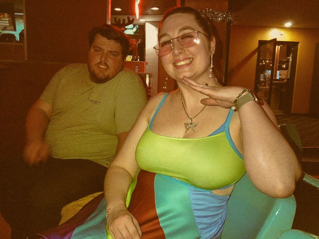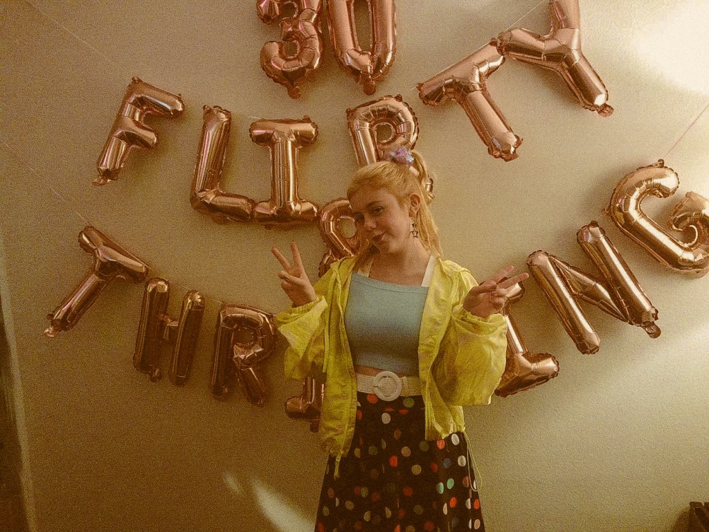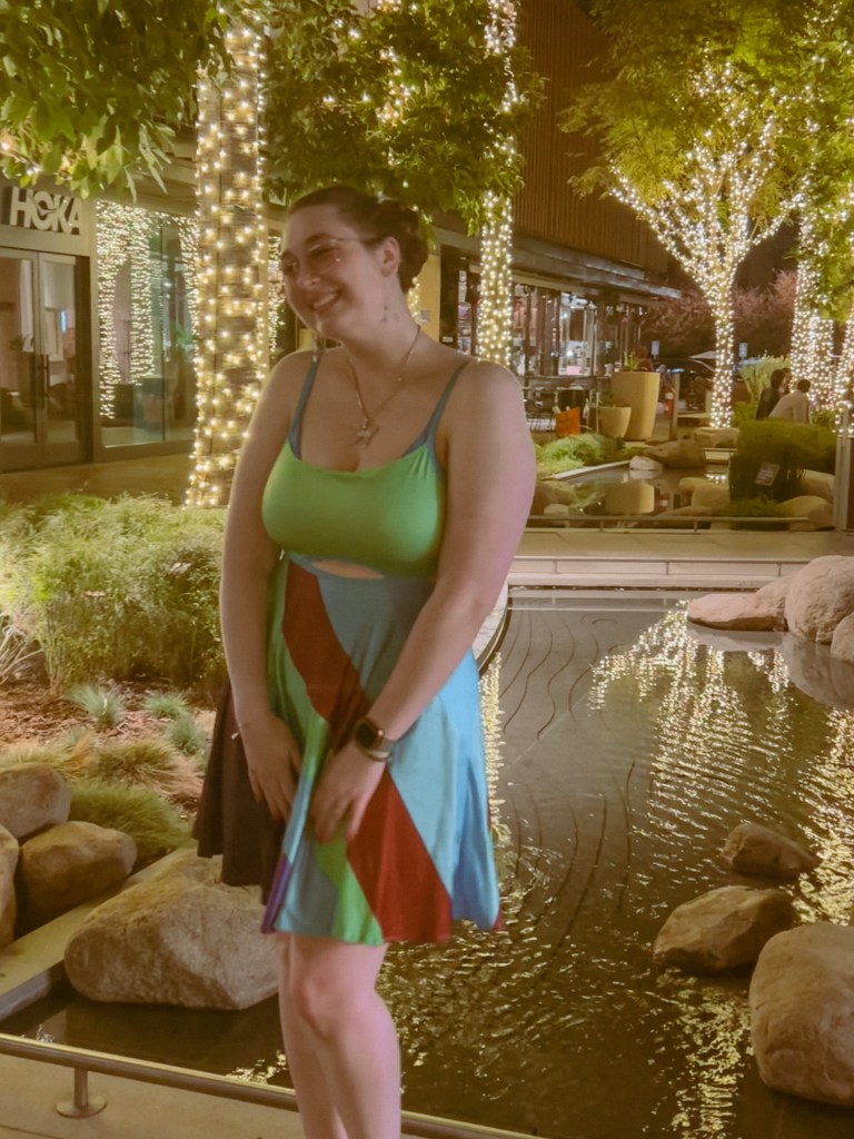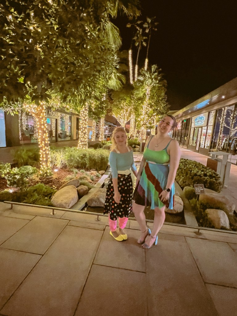 Rebekah and I each took turns getting some solo shots to really showcase the outfits we had put countless hours of time and effort finding and piecing together to match the two versions of Jenna Rink from the iconic rom com. All the twinkling lights kind of washed out the pictures, but it just added to the vintage and disposable camera vibes, so it was perfect all the same.