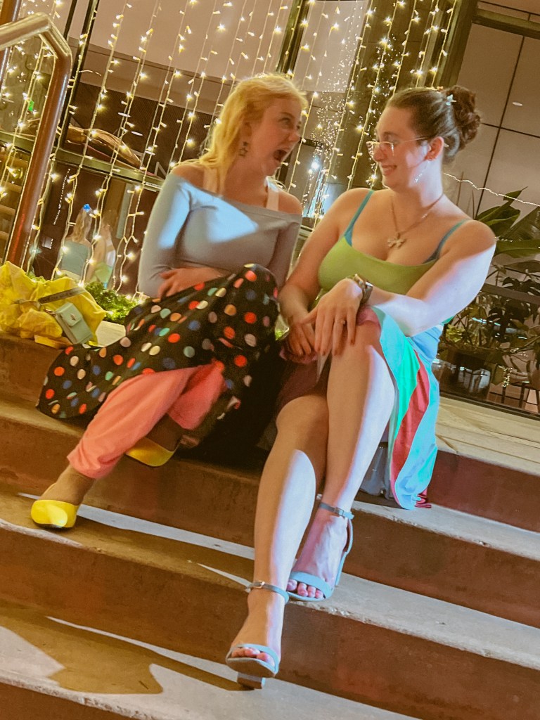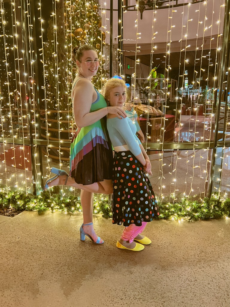 Before our trip, Rebekah and I had each found and purchased outfit pieces in order to resemble the outfits of our corresponding characters as closely as possible. This meant me tracking down the absolutely ICONIC dress Jennifer Garner wears to her first big party as 30-year-old Jenna Rink. Rebekah had her work cut out for her as young Jenna’s outfit has many more pieces to it. Luckily, we were able to find success and found pieces that we loved and were happy with and couldn’t wait to don for our joint party.