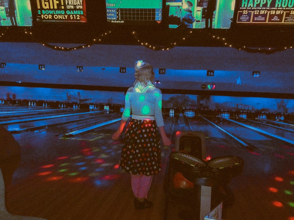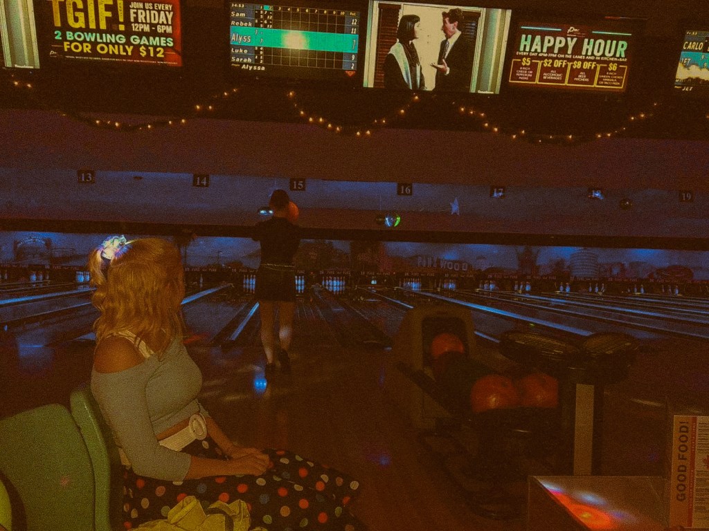 Alyssa had also brought her Camp Snap camera, so we got even more fun and retro photos while we bowled the evening away. There is something so nostalgic about bowling. Obviously there are bowling leagues where professionals that are actually good at competing bowl in adulthood, but for the majority of us, there is something simple and youthful about the game. Everyone has their own runway as they walk back from whatever successful or disaster of a frame they just bowled. We make faces, we gesture, we shout at one another. For that split moment each time, everyone is looking at you, and egocentric mindset of your youth fills you.