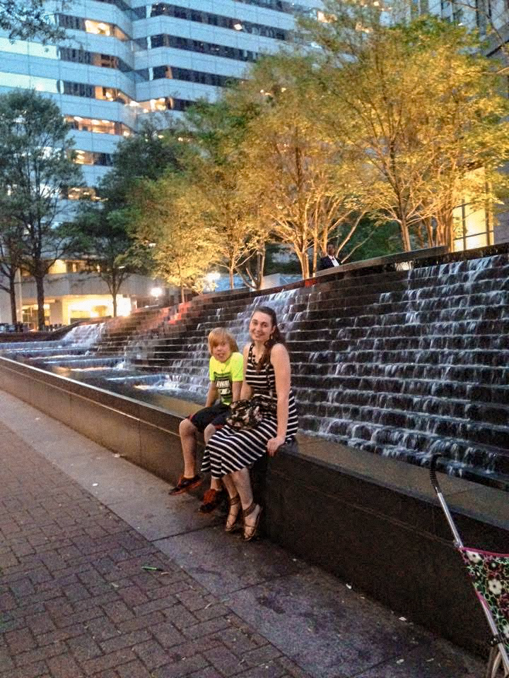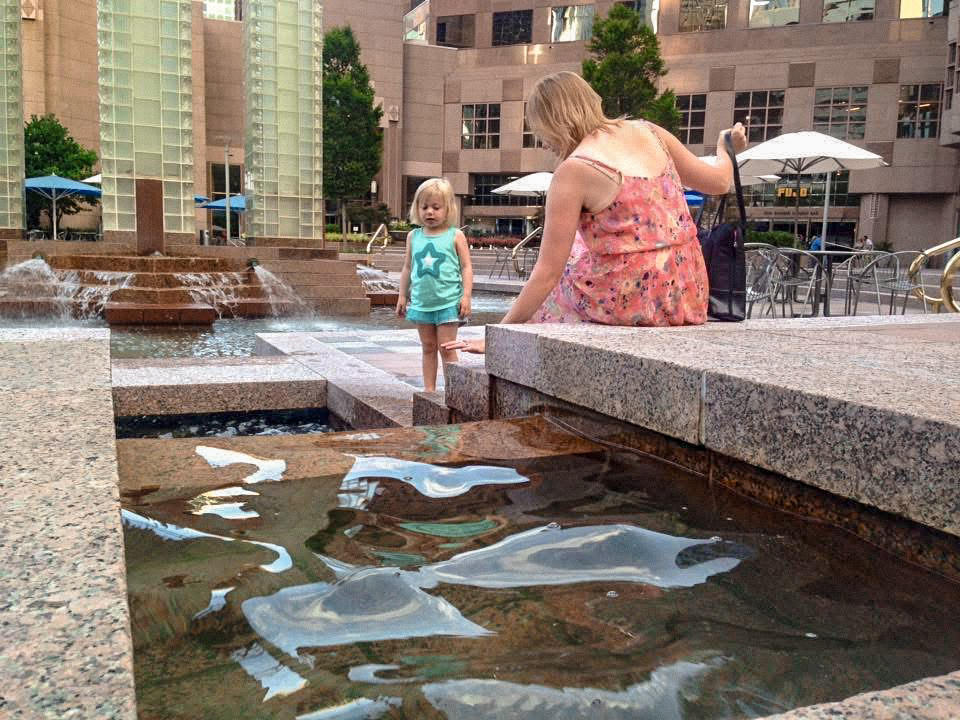 We ended our evening at a fountain within Romare Bearden Park. It was a ground level one, so many younger kids had opted to play and run around in the cool splashes and sprays. Rebekah didn’t have a swimsuit, but she was young enough that whipping off her shirt and flouncing around in just her shorts was completely acceptable.