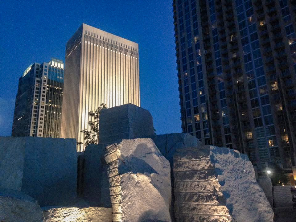 Coming from a South Dakota town, all the tall buildings were an exciting enough view and landscape for us. We come across several lovely parks or sitting areas with more fountains and water features. This helped make our walk manageable and allowed us to not overexert ourselves.