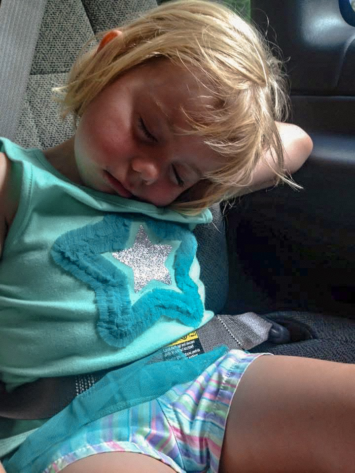 The heat was enough to zap the energy from anyone, but it seemed to hit little Rebekah especially hard, and she got the jump on sneaking a quick nap in as we made the drive.