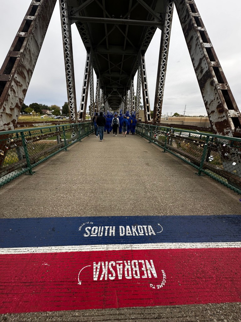 We had a very cool parade to get to! This parade starts in Nebraska and we march all the way to South Dakota! The state change happens over an old train bridge that has been changed to a pedestrian walk way.