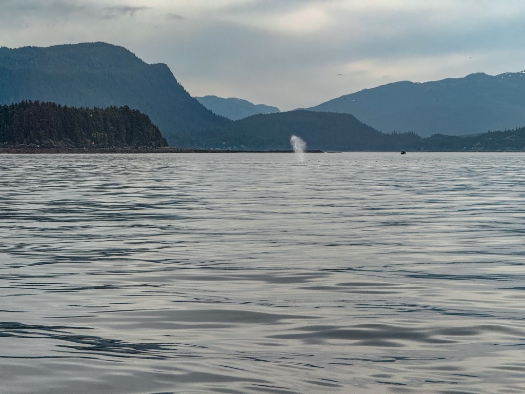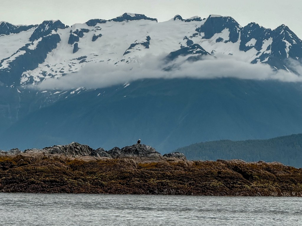 As we made our way over to our next location, we spotted a bald eagle casually perched on a large rock of a little island. This was also very fun to see at the time, but we also didn’t know then that we would be seeing so many more eagles over the next few days of our Alaska adventure. We also spotted a few more spouts and fins along the way but didn’t quite get the same show we had been fortunate enough to have with Kelp.