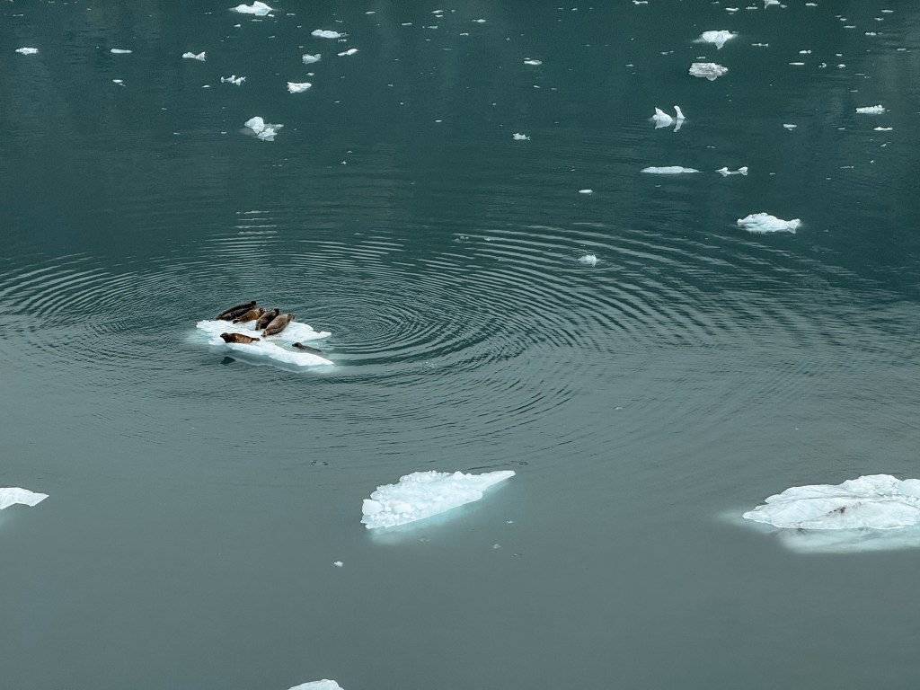 Diverse packs and pods of wildlife also began to float past our view. We had already seen whales, seals, and sea lions before even reaching Glacier Bay, but it didn’t excite me any less to see a comfortable group of these little sea sausages (seals) lounging on one of the icebergs as our boat carefully slid past. The one aquatic animal that we had yet to see that was extremely high up on my bucket list, being my second favorite animal in the world, was the otter.