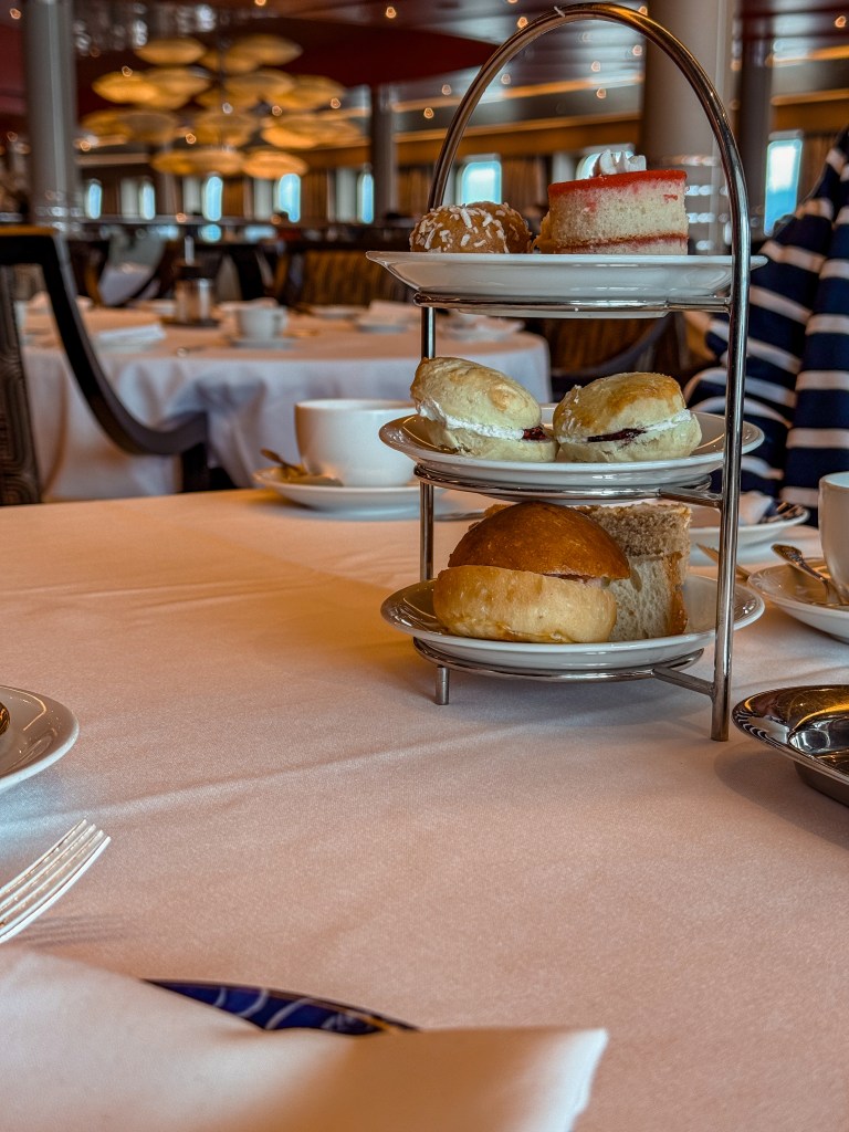 Our last activity that was on our for sure list was attending another afternoon tea. This time, it wasn’t specifically a Dutch tea, but just an afternoon tea. We loved the first one so much that we weren’t about to miss this one! On our way there, we just so happened to catch a great view of the park rangers hopping into the dingy that they had used to originally board the ship that morning, but this time it was taking them back to land. We al, waved goodbye as they departed, and then we continued our walk to the dining room for tea.