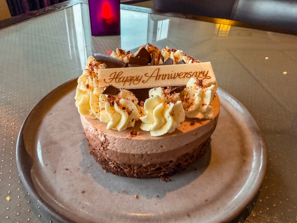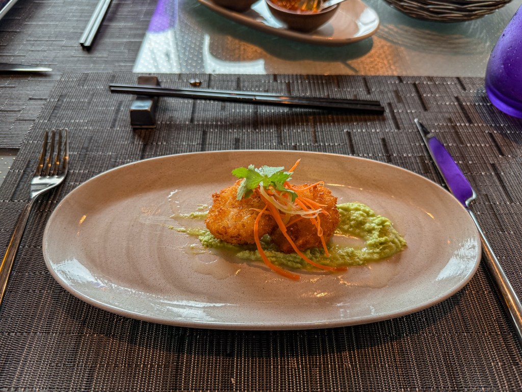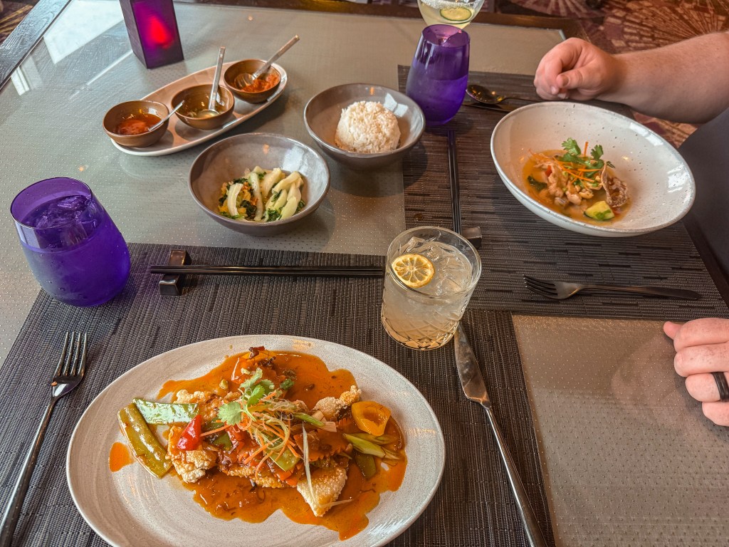 With it being July 18th, 2025, it was officially the day of Luke and my 5th wedding anniversary. Being in the middle of the ocean wasn’t going to prevent us from celebrating! We had made a reservation at one of the specialty restaurants on the ship called Tamarind, specializing in Pan-Asian cuisine.