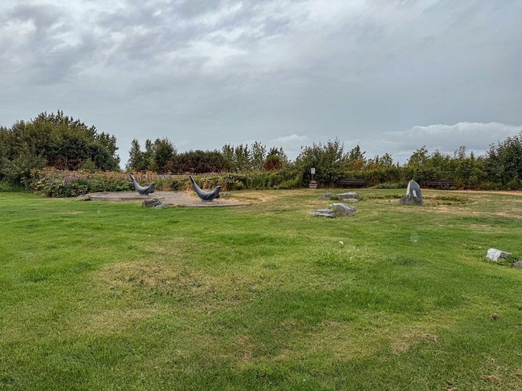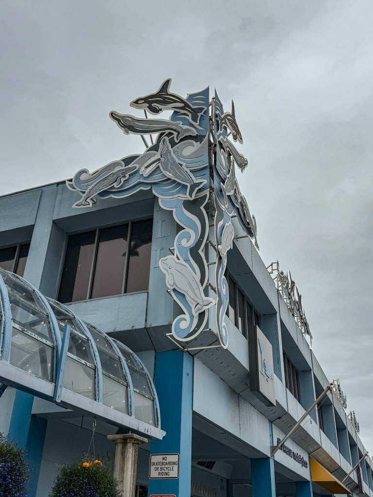 After eating, we decided to walk off our meal and regain some energy at once, so we took a stroll down to a cute little park we had seen from our train on the way in. It had a couple of porpoise sculptures and a little orca sculpture. It was a very solid little hike, so we were ready to make our way back downtown and do a little leisurely shopping.