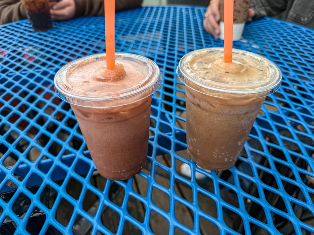 While they did serve coffee, they were also advertising for their new dirty sodas, so Luke and I opted to give those a try as opposed to our usual coffee ordering. There was a sign posted with two barista favorites, so we each tried one. Luke went with the Dr. Pepper, coconut, vanilla, and cream. I decided to try the Coke, black cherry, vanilla and cream.