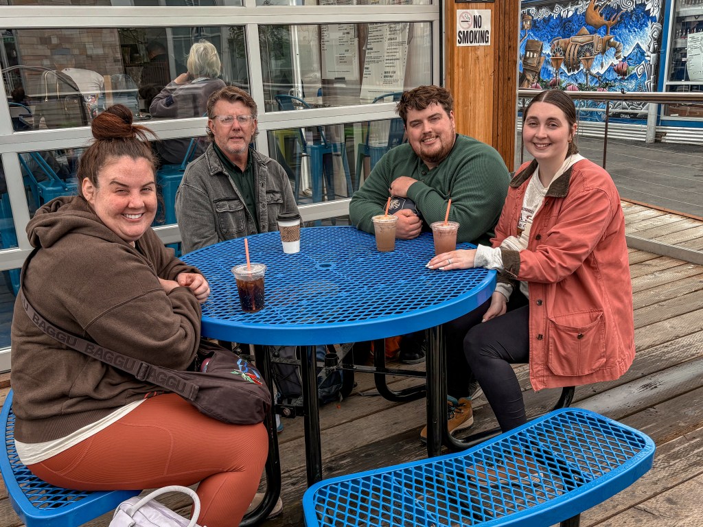 There was a little trailer-sized building called AK Alchemist Coffee. It’s a little cafe that serves breakfast, coffee, and Alaskan-Mexican fusion lunch dishes. While all the food definitely looked and smelled like it would be delicious, we had already eaten and were mostly there for a drink.