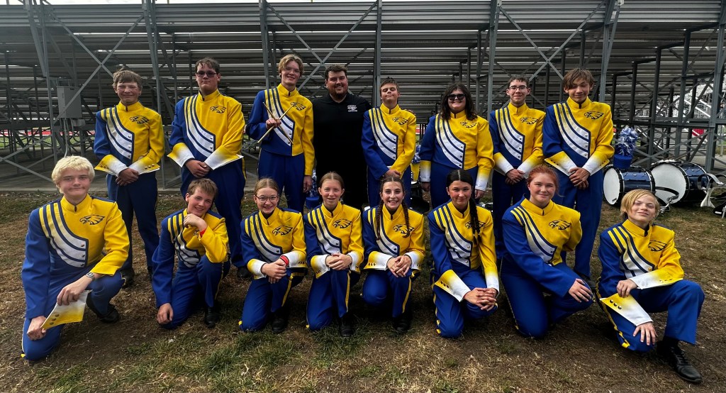 On October 11, 2025, the Golden Eagle Marching Band traveled to Yankton, SD for a successful parade and competition, winning first place and best percussion awards.
